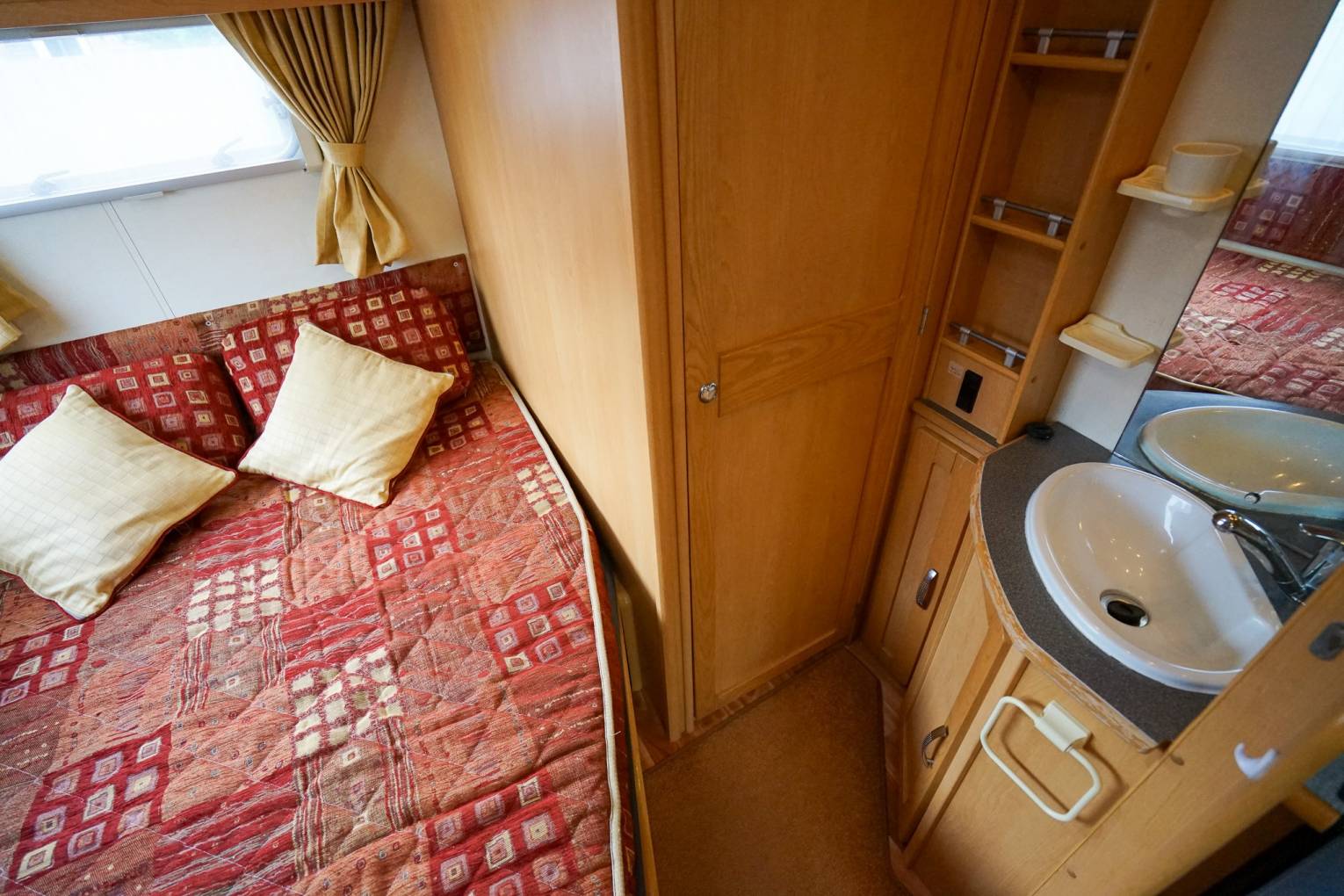 the wardrobe. Overhead there is a comfortable double bed which slides back to