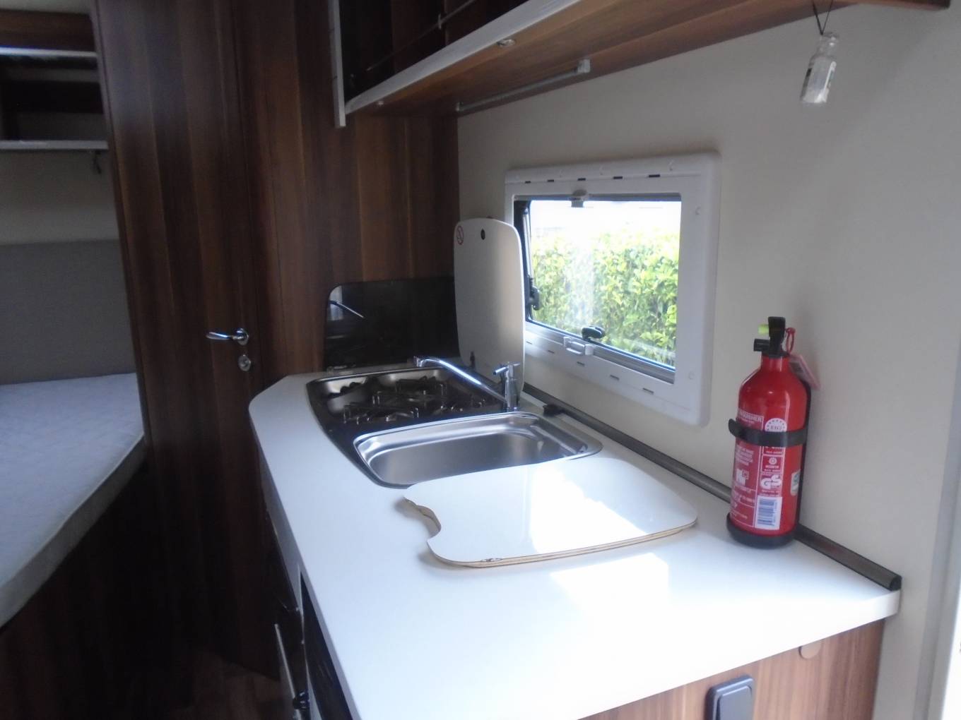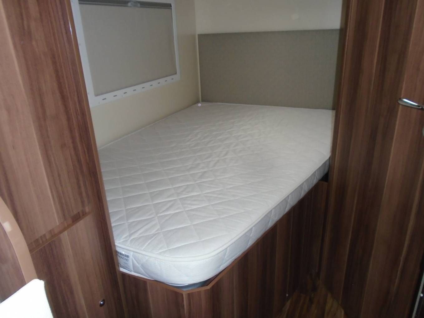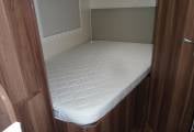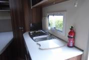 To the rear is a washroom with enclosed shower cubicle, toilet and vanity sink, adjacent to the side mounted double bed with storage underneath accessed both internally and externally. There are plenty of storage lockers here too. Throughout the interior the styling is light and modern with 'easy to keep clean' practical materials.