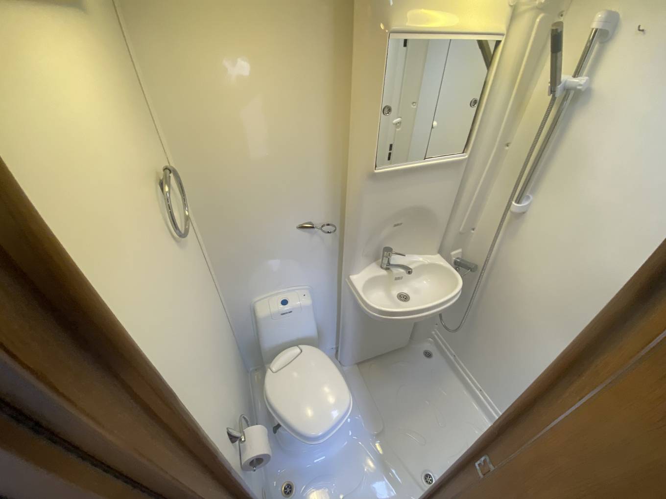 storage drawers and cabinets around. Opposite is a very well appointed washroom