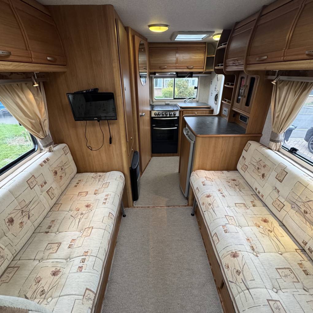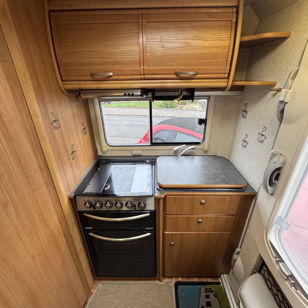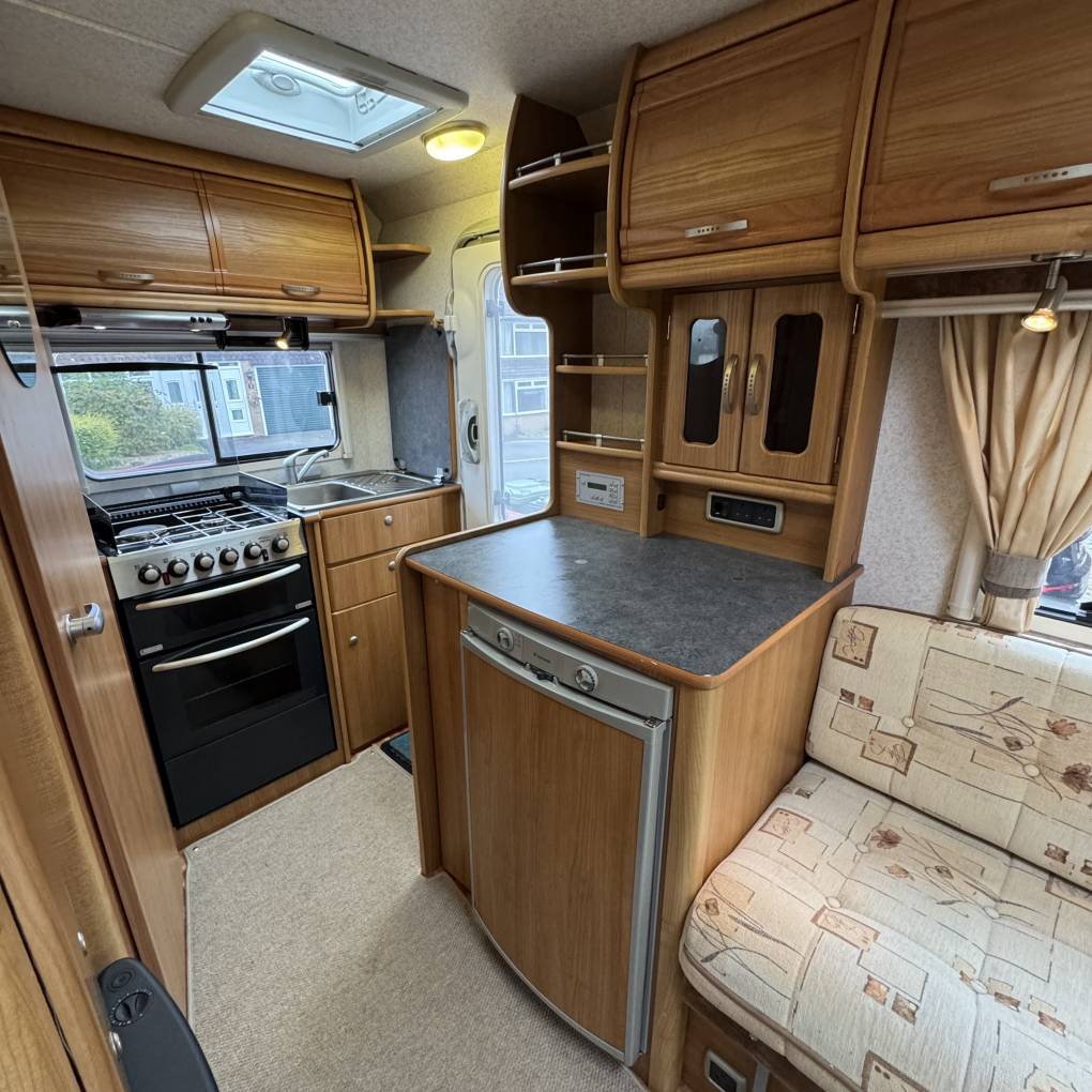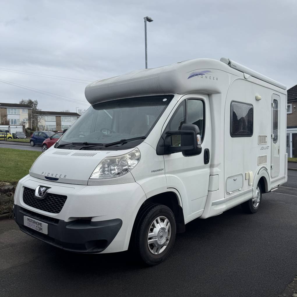 Welcome to the sale of this 2008 Autocruise Pioneer Jolliet based on a 2.2 Peugeot diesel. Starting at the rear, we have the well equipped kitchen that includes 3 burner gas hob with additional electric ring, grill, oven, handwash basin with drainer and the 3 way fridge. Adjacent to this is the surprisingly spacious and versatile washroom that is comprised of cassette toilet, handwash basin which will cleverly swivel to create a good sized separate shower enclosure. The lounge, although compact provides ample seating for you any any guests and will provide sleeping for 2 either as 2 single beds with the use of the swivel seats or be pulled together to provide a good sized double if required. There is ample storage with a good sized wardrobe and the overhead storage lockers throughout.