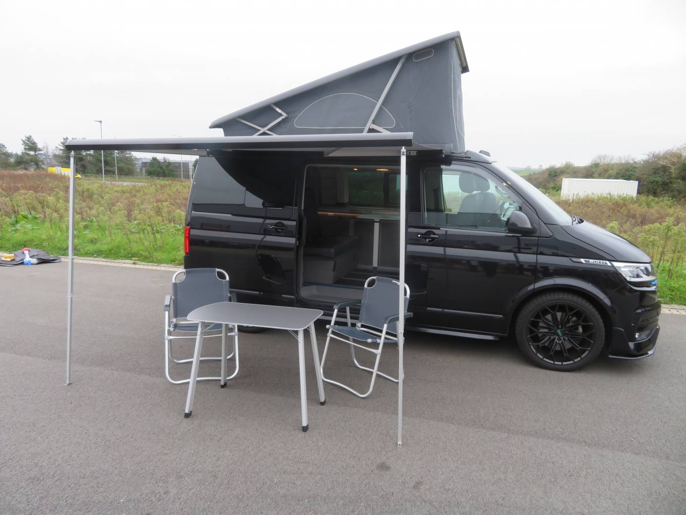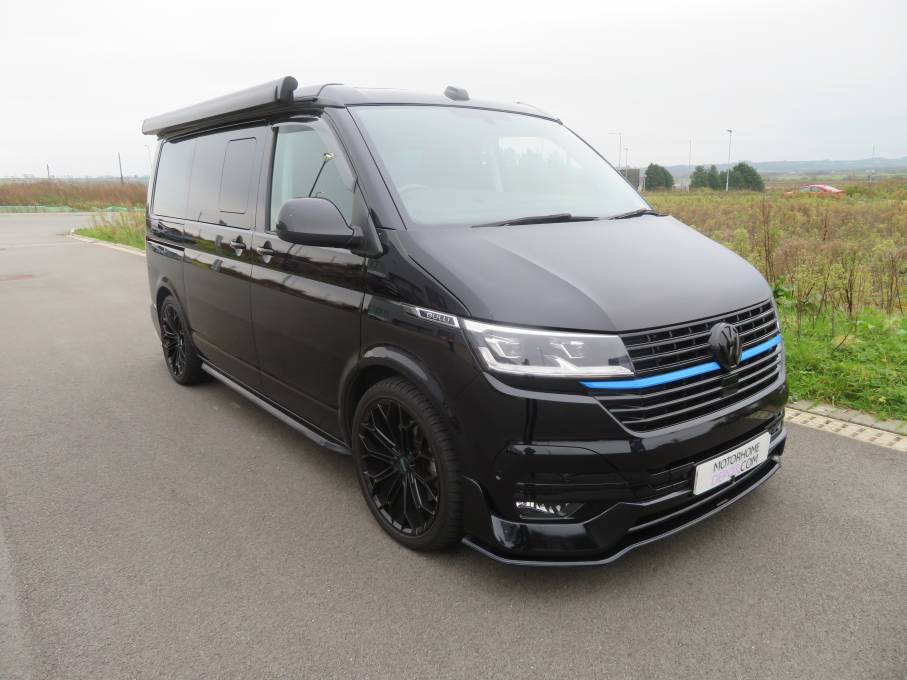 Motorhome Depot North Wales Present a stunning Volkswagen California Ocean DSG Campervan, This 2021 example finished in Black with Blue trim is a real head turner with its R line body styling, Full R line Leather interior, R line Steering wheel and upgraded Leighton Wheels. She has covered 16,500 miles and benefits from a VW Service plan with one service and MOT remaining.