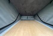 Starting at the front of this desirable campervan you have the double Vulcan seats which swivel to the rear giving you a great area for relaxing & socialising with space for four around a large central table that is easily removed and stored. The central dinette has a quality kitchen area with sink, 2 gas rings, fridge with icebox & plenty of storage space. As evening nears the rear travelling seats easily convert into a comfortable double rock “n” roll bed with storage underneath. You will find the second sleeping area in the pop top which has a panoramic canvas giving plenty of natural light. When this is not being used it pushes up to maximise head room.
