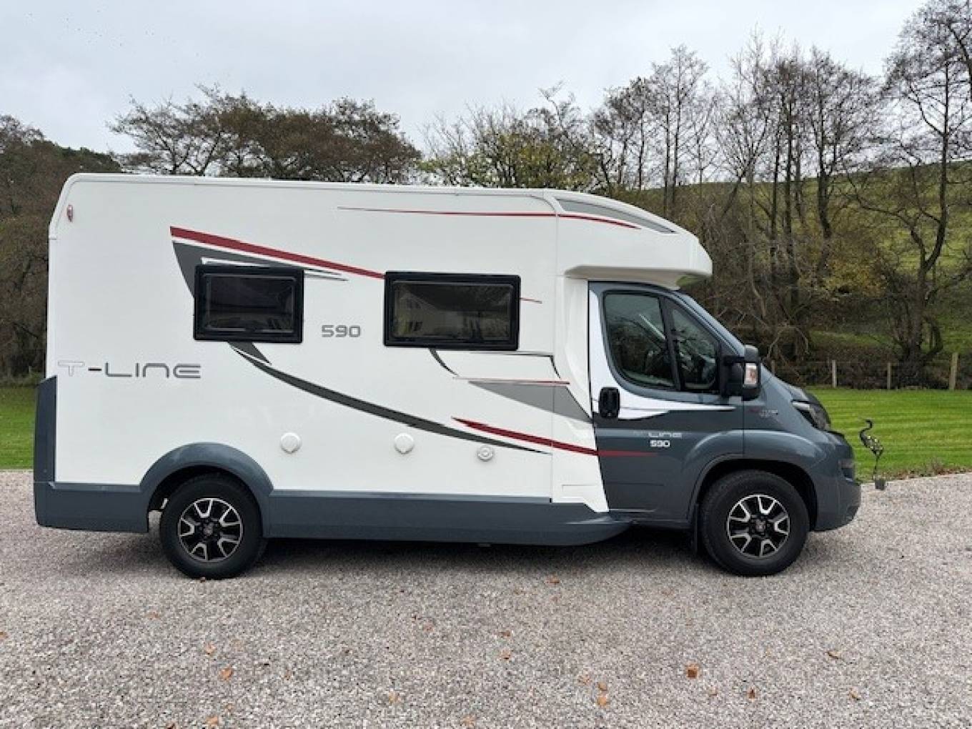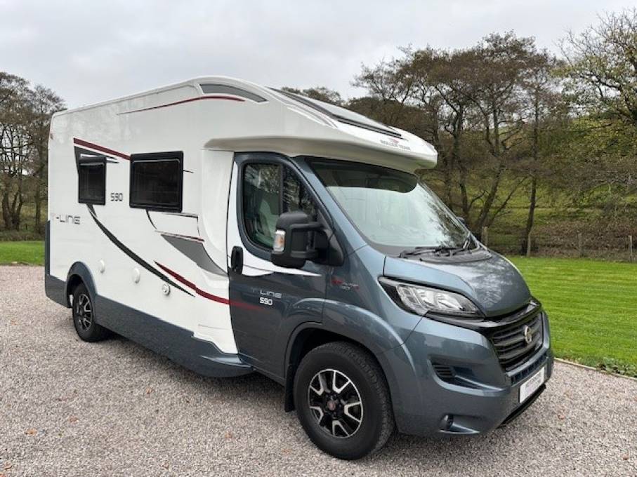 Motorhome Depot North Wales Present a Stunning Roller team T-line 590 4 berth compact Motorhome, Based on the Fiat Chassis this fine example has covered just 9,800 miles and is immaculate.