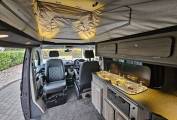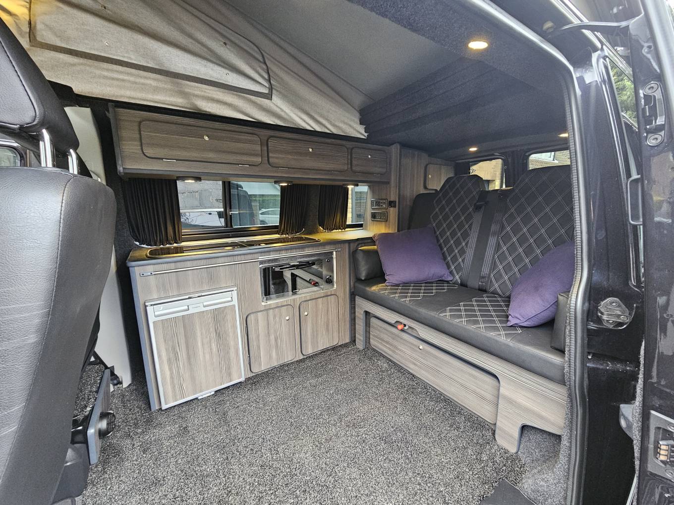 Externally, the camper has 20 inch alloy wheels, sidebars, and upgraded halogen headlights with daytime running lights. It’s also equipped with a tow bar, Bluetooth connectivity, air conditioning, and a comprehensive thermal blind set, making it perfect for adventures in any season.
