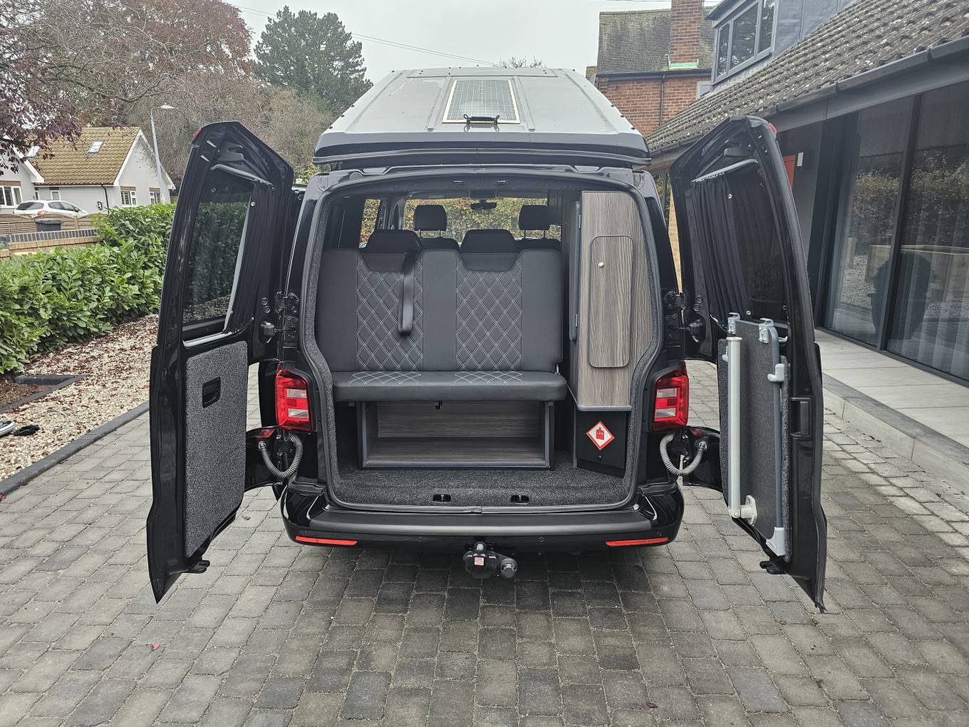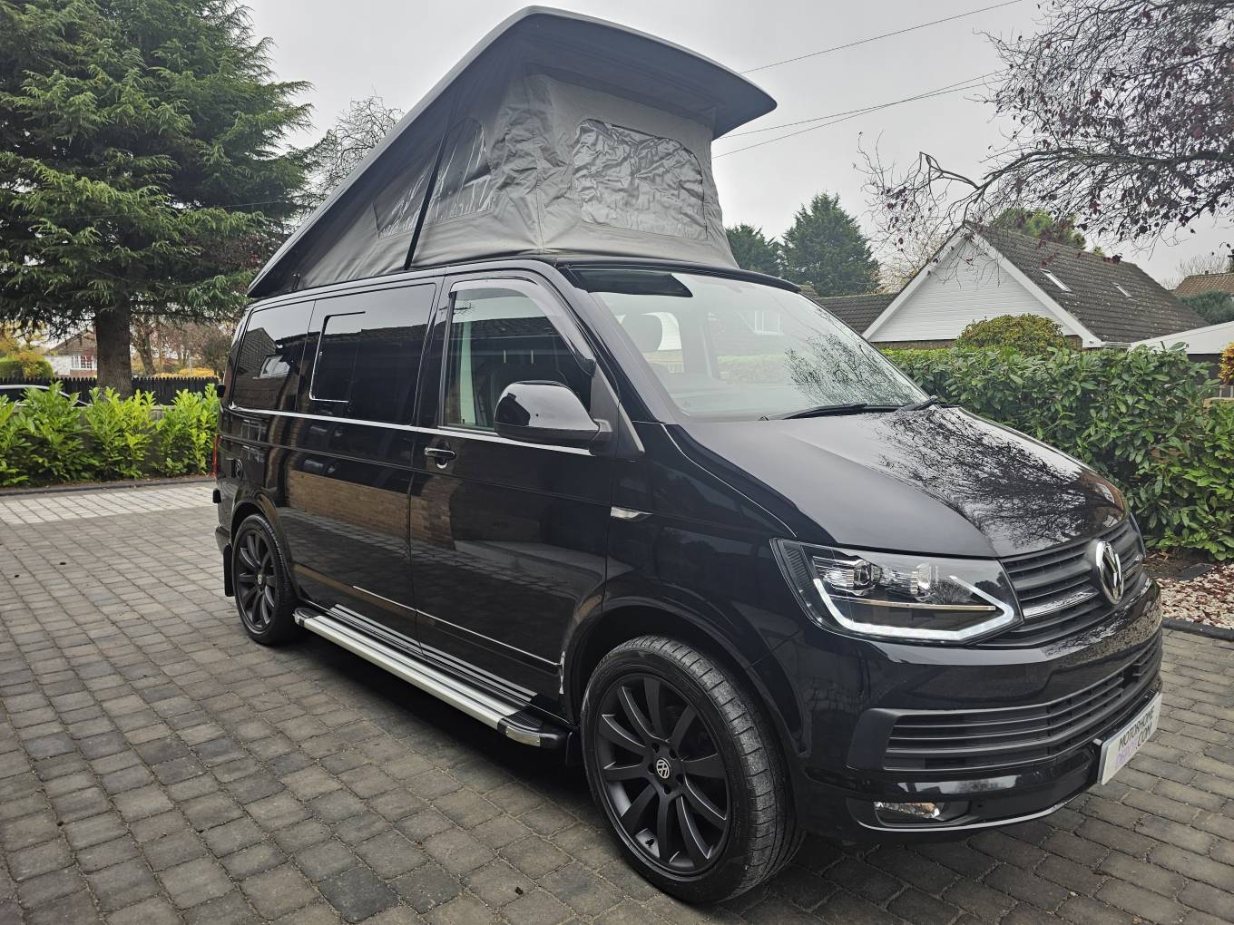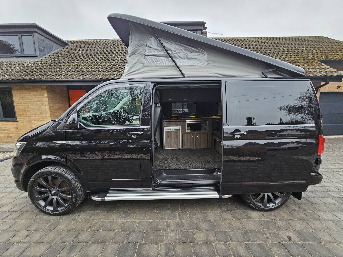 Introducing this stunning Gloss Pearl Black Volkswagen T6 Transporter Highline, professionally converted by Camper King, to deliver high-quality design and versatility for all your camping adventures. First registered in 2018, it features a reliable 2.0 TDI engine.