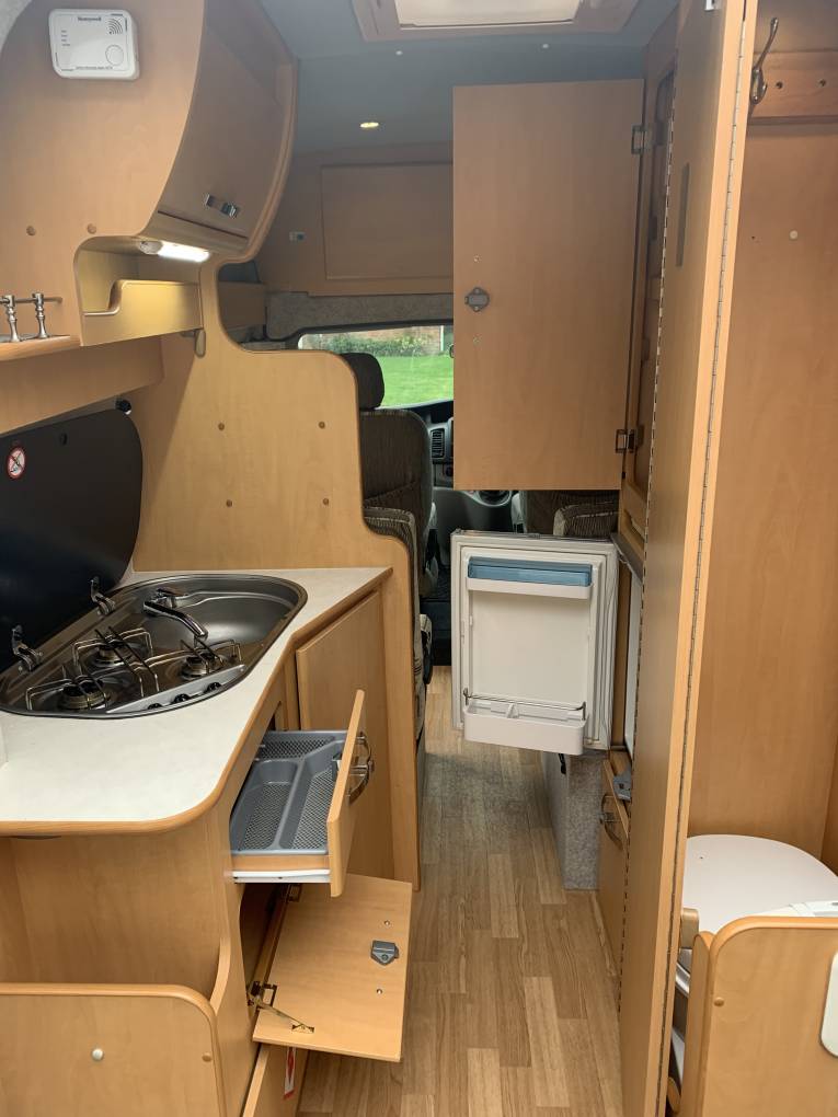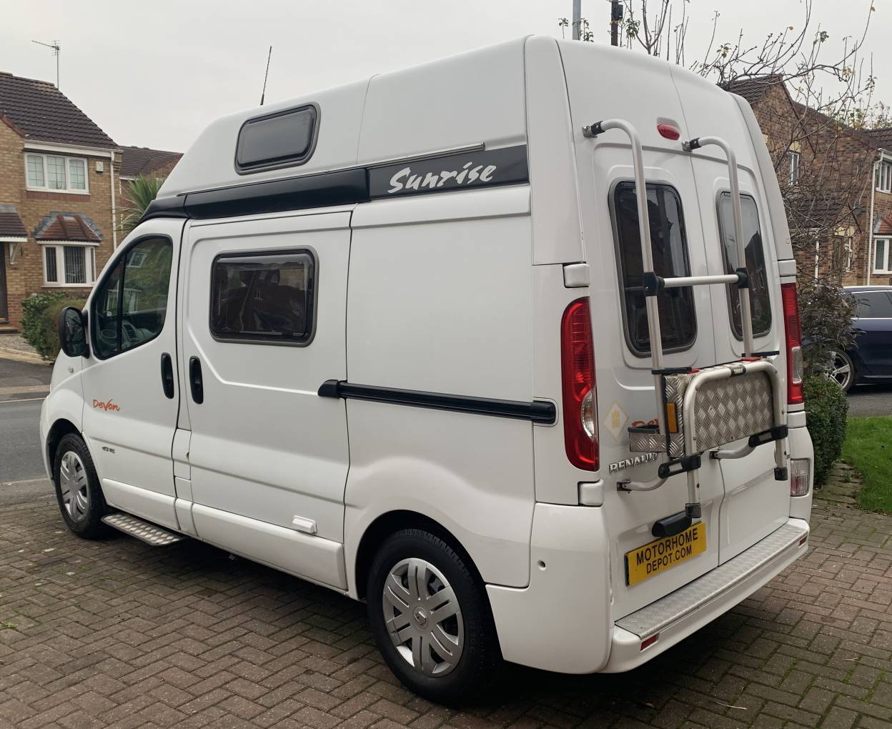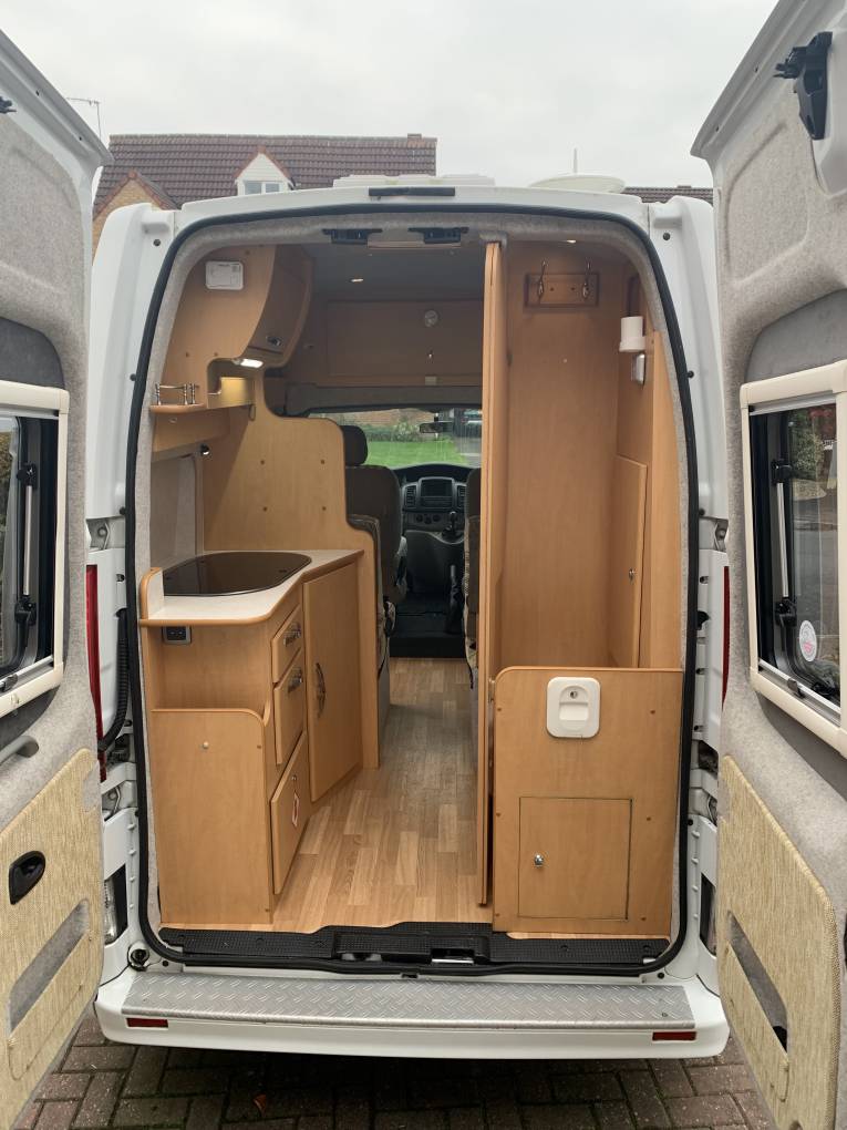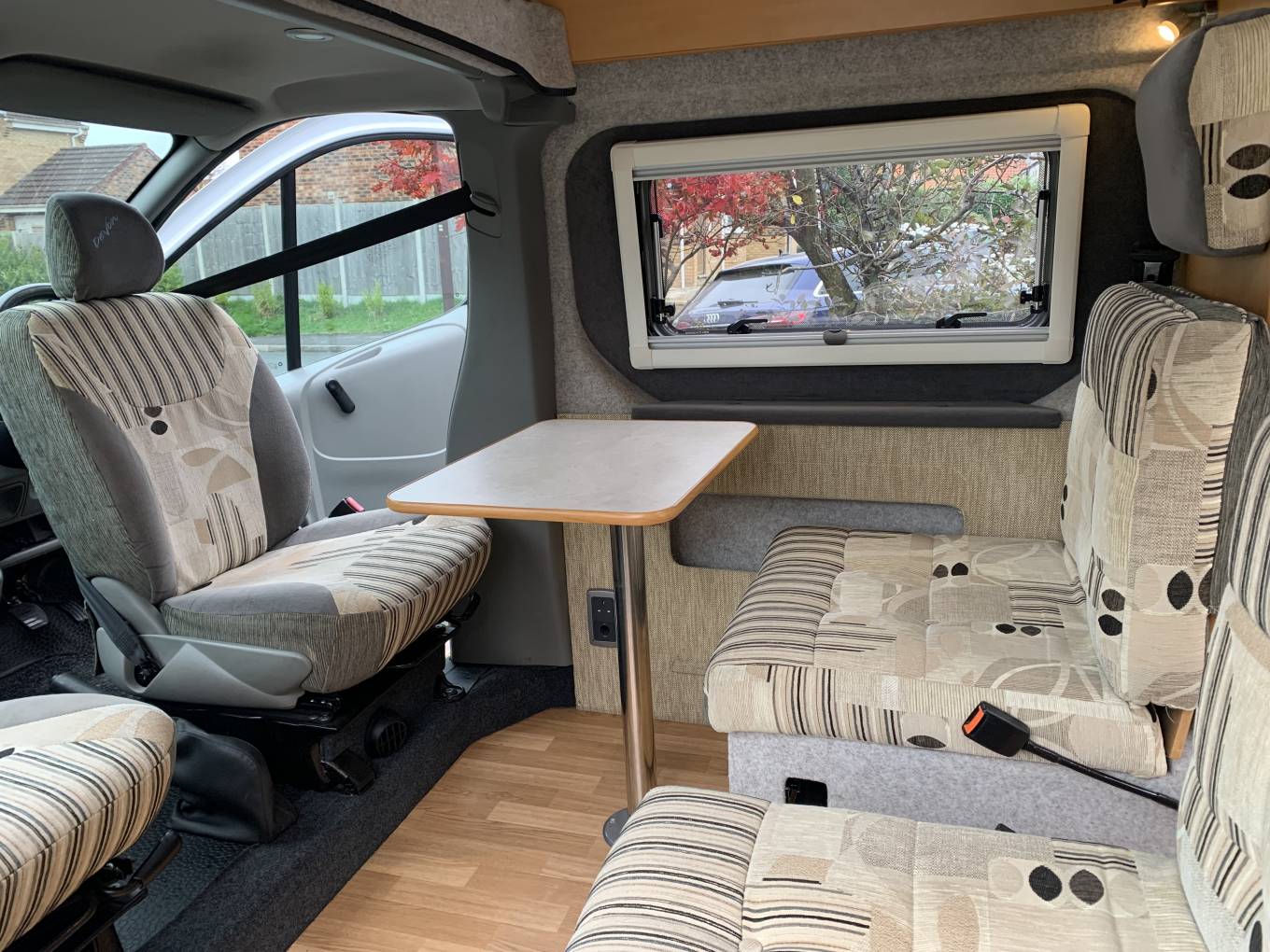 Call 01423 609985 for further information. This is a lovely, professionally conversion, High -Top Devon Sunrise, 2 berth campervan, with 4 seatbelts, which is ideal for use as a campervan or a day van. You can stand up in it, without the need to lift a pop top.