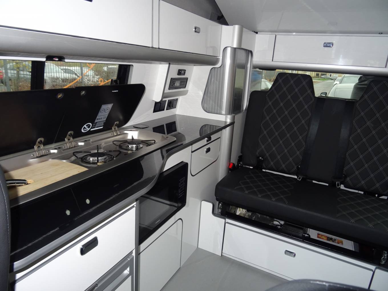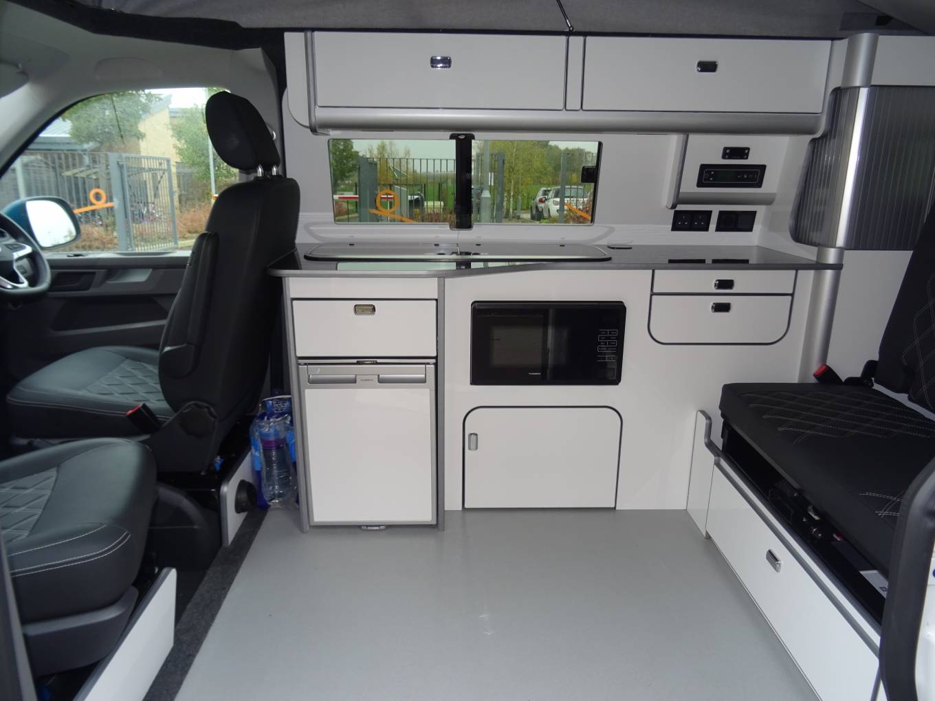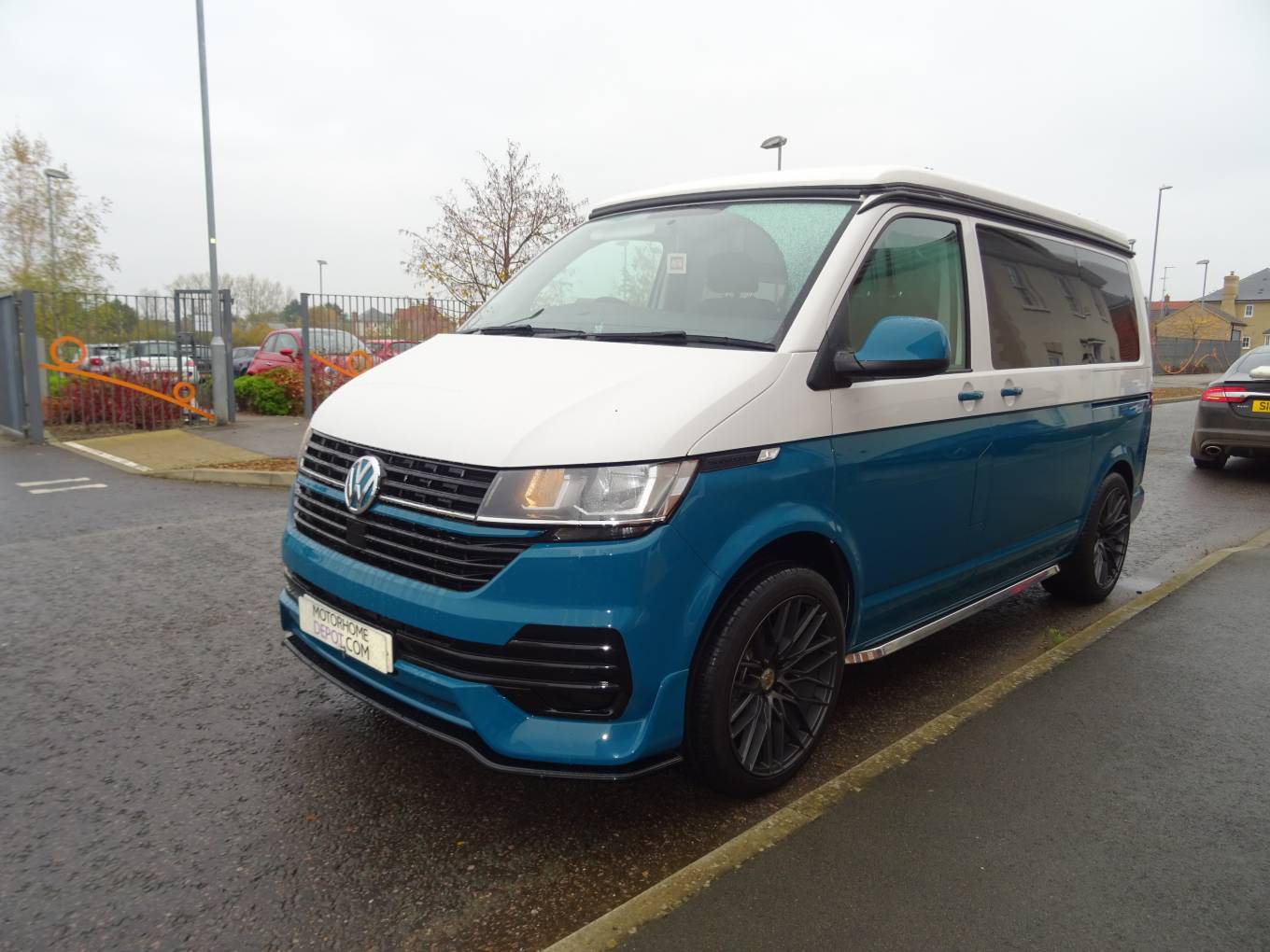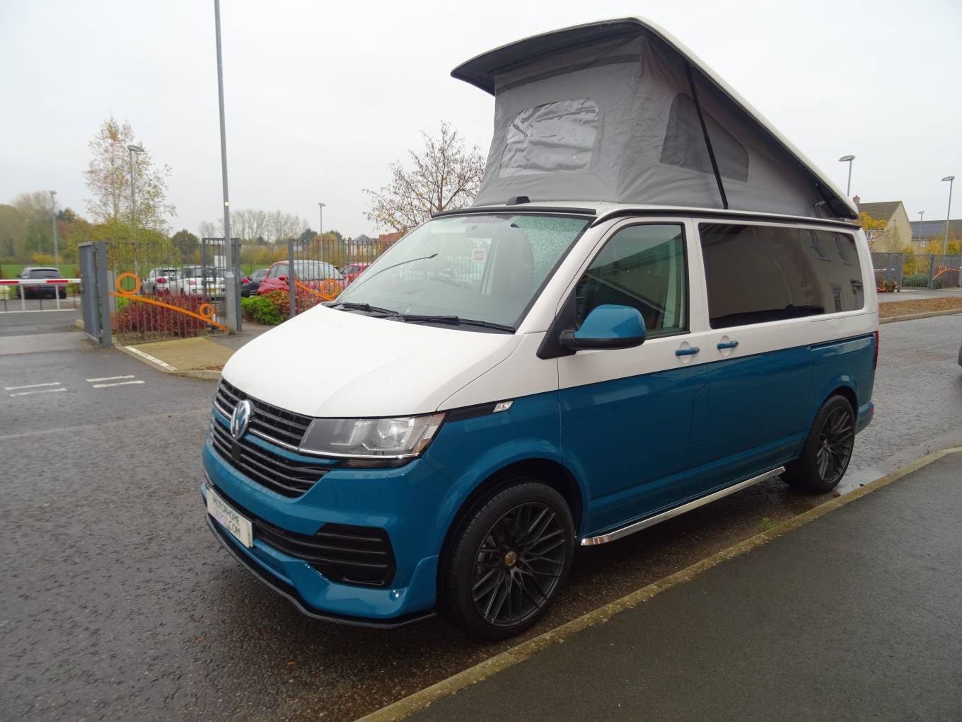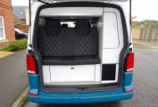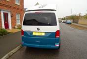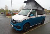 This stunning 4 Berth Volkswagen 2023 T6.1 Startline SWB T28 Manual gearbox Pop Top with only 1,456 miles In retro two tone candy white and VW sea blue. Conversion by Needingworth campers and has a very high quality finish and a great looking layout inside. Located in the Ely area. On entering the side door you have slimline kitchen area with sink, 2 gas rings, fridge, fitted with black metallic work top and white gloss splash backs, microwave and good storage space. Passenger front seats swivel round making the central seating area very comfortable and a great socialising and dining space. To the back the high quality fabworx M1 crash tested rock and roll bed and Isofix points, with and black Bentley stitched seats, easily makes into a good size double bed with storage underneath. Rear seats come with 3 point seat belts for each passenger. The pop top bed comfortably sleeps 2 people. Other great features: cab air con, diesel heating system with digital thermostat, leisure battery, solar panel, cruise control, led down lighting, stainless steel side bars, 20" Alloy wheels, rear parking sensors and plenty of storage through out.