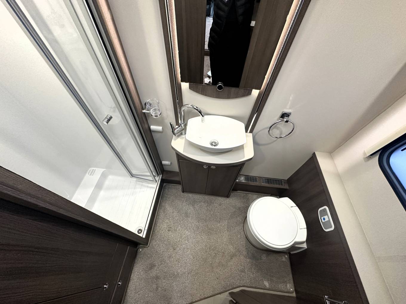 separate shower cubicle, Thetford cassette toilet, handwash basin with vanity