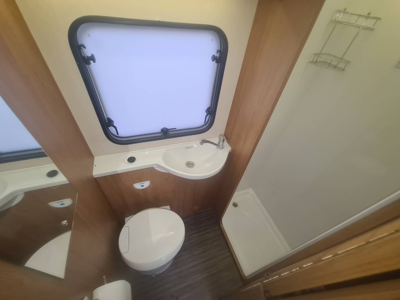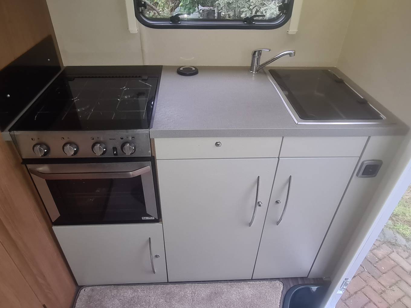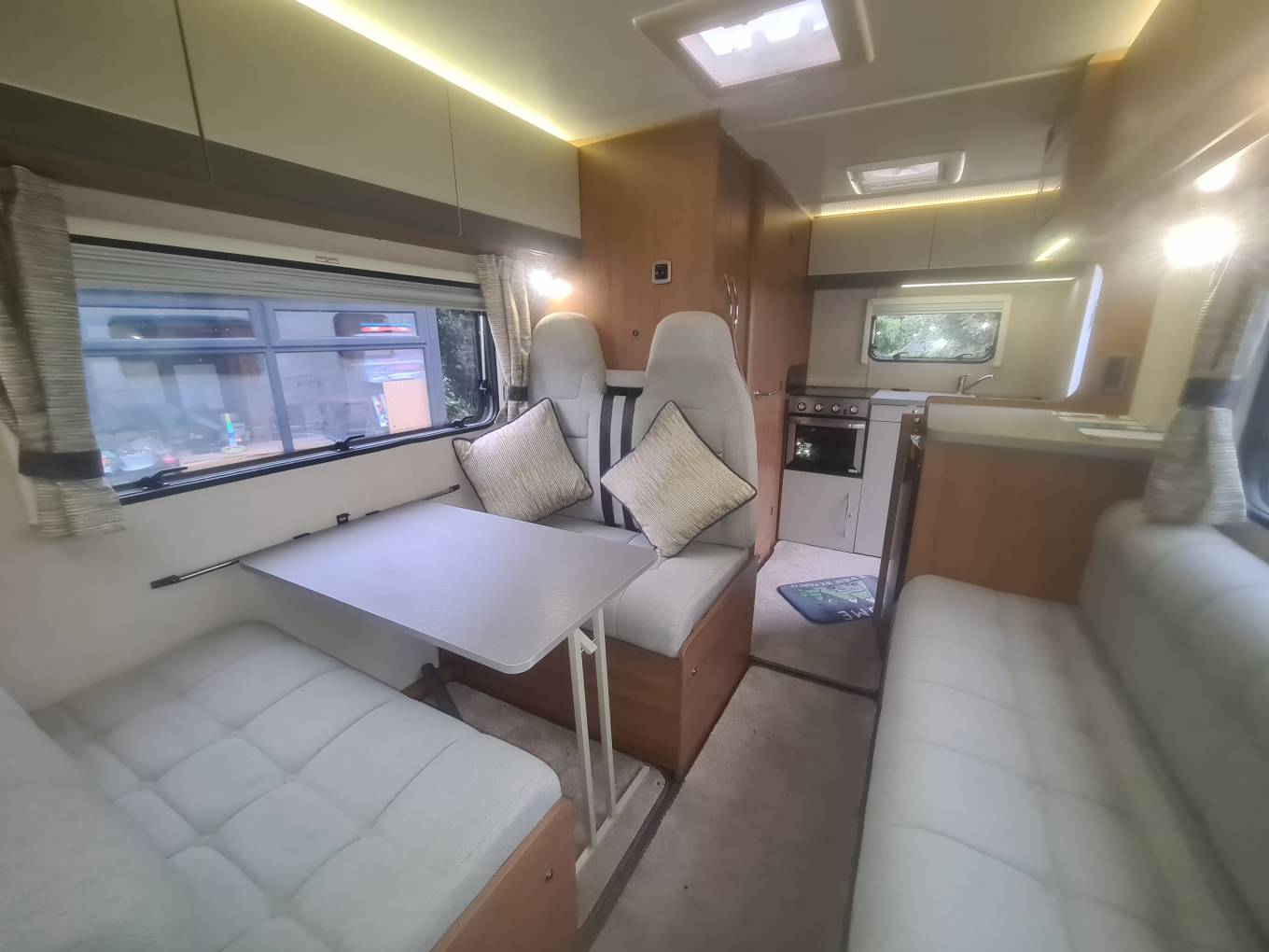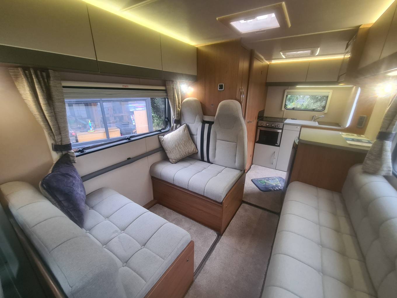 At the rear you have a fully functional kitchen with a full sized cooker, sink, microwave and 3 way fridge freezer.