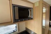 With the large rear fixed double bed which sits above the huge rear garage we then come to the washroom/shower and toilet which is well proportioned.