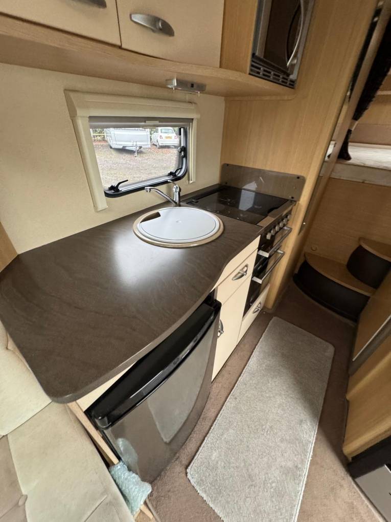 Next we have the well equipped kitchen area with 3 ring 1 electric hob, grill oven and microwave and large 3 way fridge.