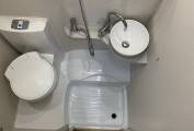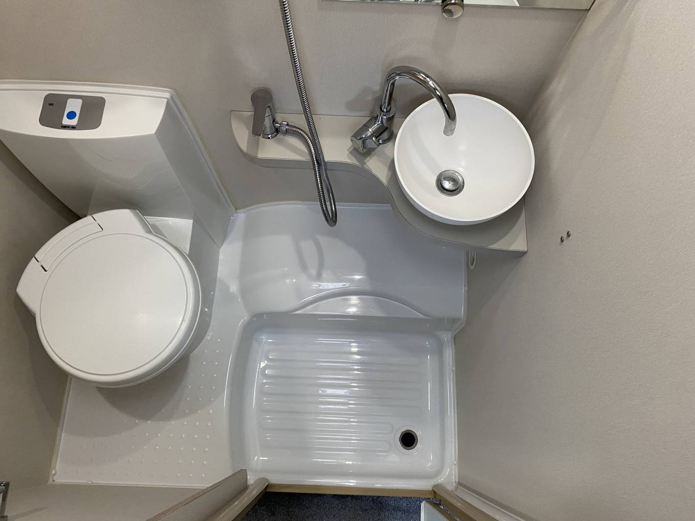 washbasin with swan-neck mixer tap, Thetford swivel cassette toilet, medicine cabinet, mirror, skylight and integral