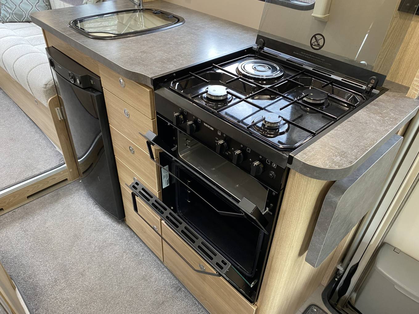 and food preparation. There is also a modern Dometic fridge with an integral
