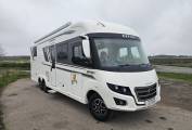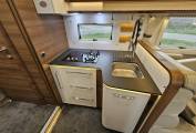 Swivel captain’s chairs, cab air conditioning, and an Alde heating system guarantee year round comdort. large internal and external storage compartments make it easy to bring everything you need. This model also includes a Thule Omnistor awning, external hot and cold water outlets, and a spacious garage for additional storage or outdoor living gear.