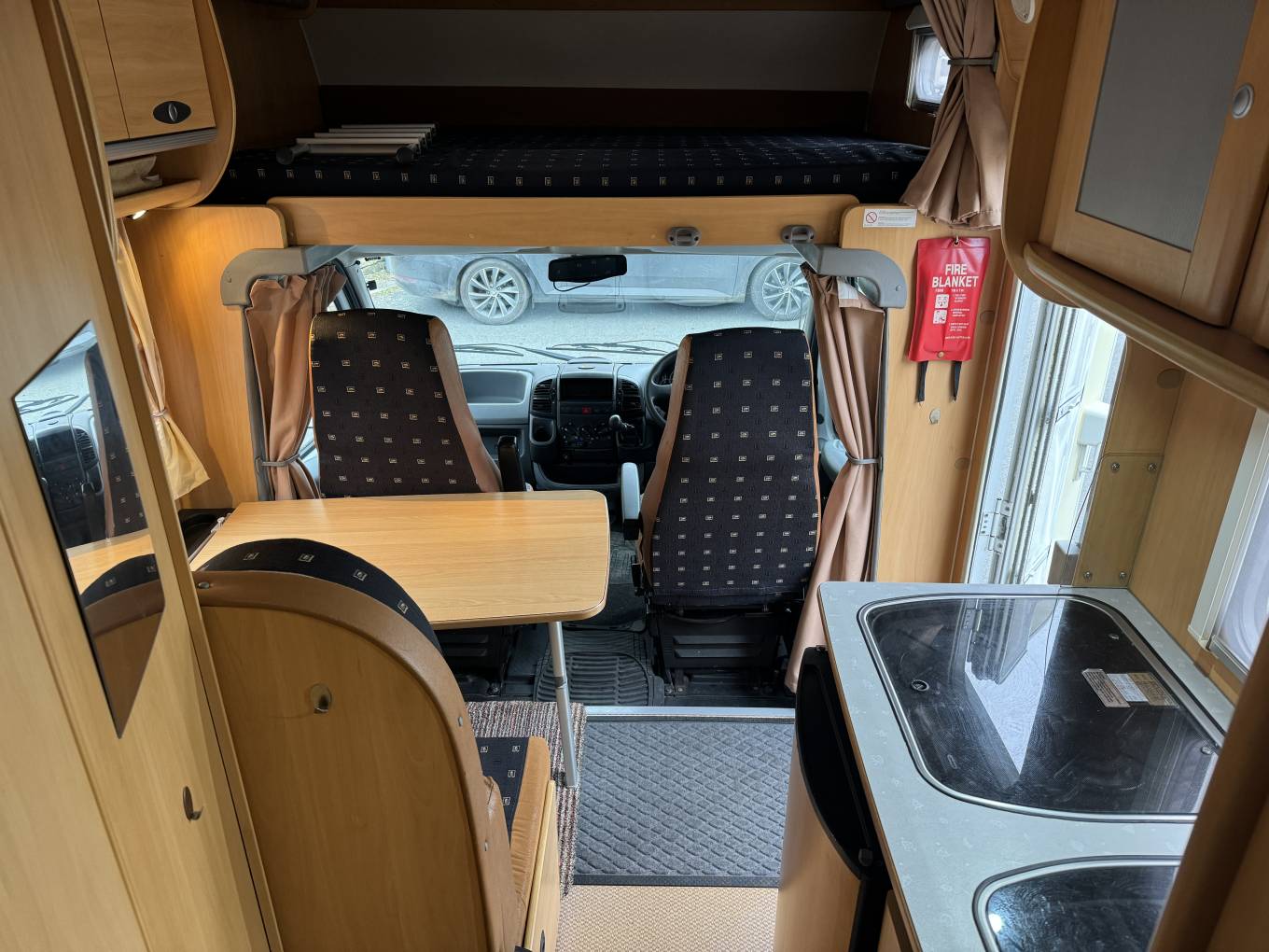 Starting with the rear of the motorhome, you have the highly popular fixed elevated double bed with the garage situated below which has plenty of room to store items such as drive away awnings, luggage and many other items.