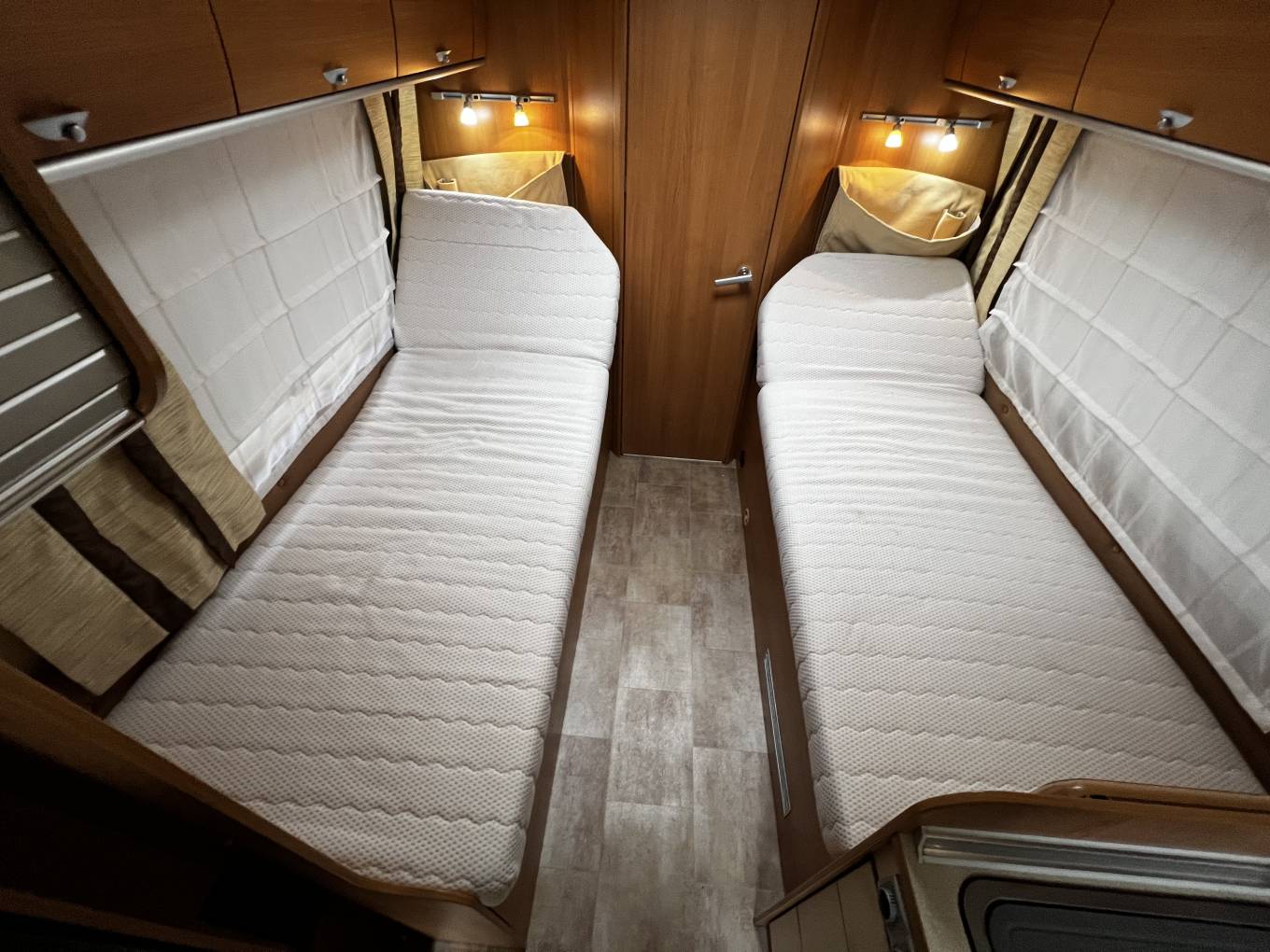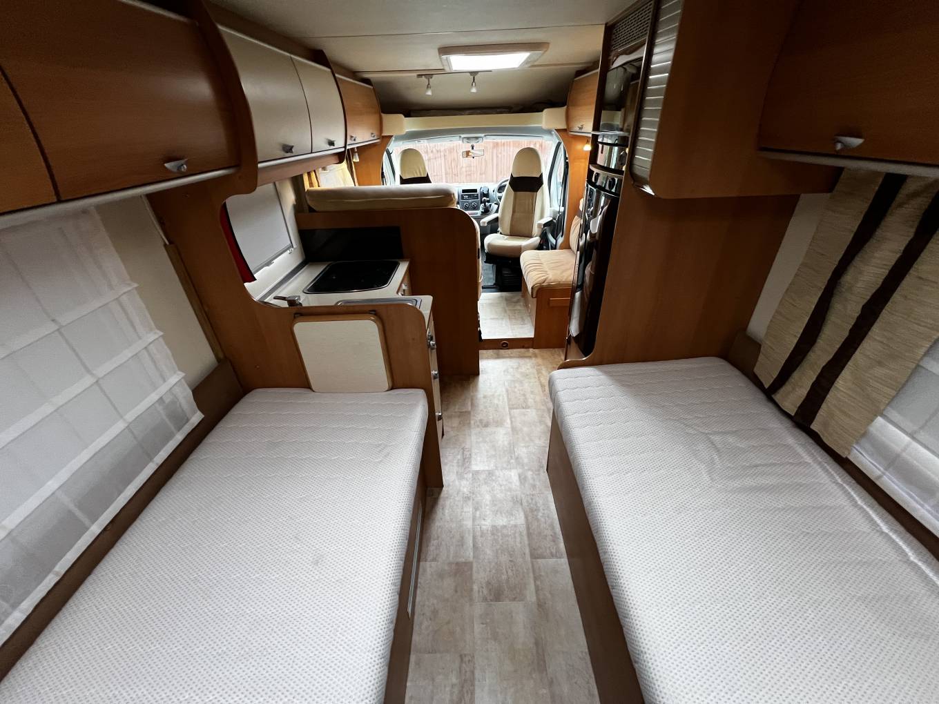 Moving rearwards sees two good sized single beds which have adjustable sit up sections and plenty of storage below.