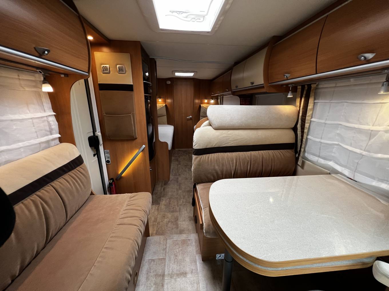 This Bürstner Nexxo T720 is a 2+2 berth with twin fixed single beds measuring 7.4m long with a Gross Weight of 3500kg.
