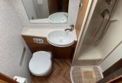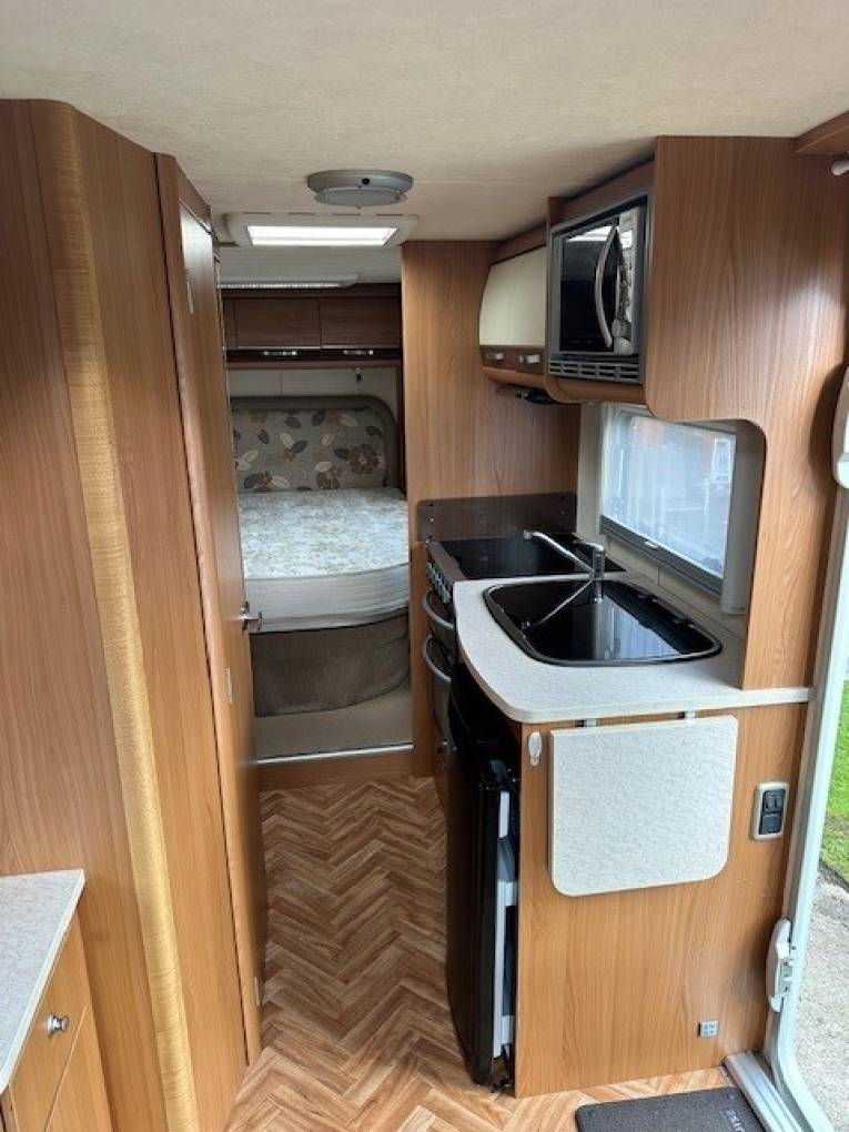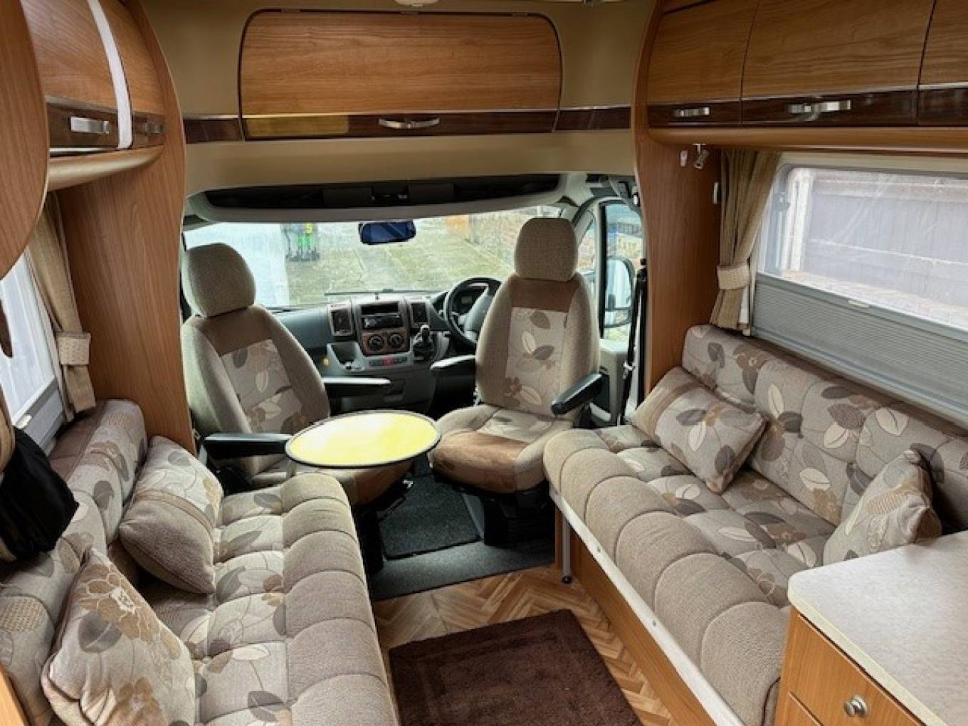 The Autocruise Oakmont's layout is a fixed Island bed with plenty of storage beneath ,A spacious front lounge provides seating for 4 persons easily with twin swivel chairs and opposing sofas providing luxury accommodation. Mid ship is a well equipped kitchen facility and spacious washroom with separate shower.
