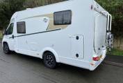 Outside there is an additional nearside garage door to standard factory specification giving access from both sides, Thule wind out awning, gas locker with space for two gas bottles, LED awning