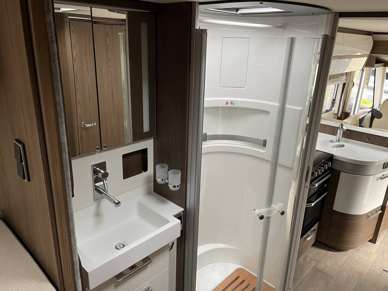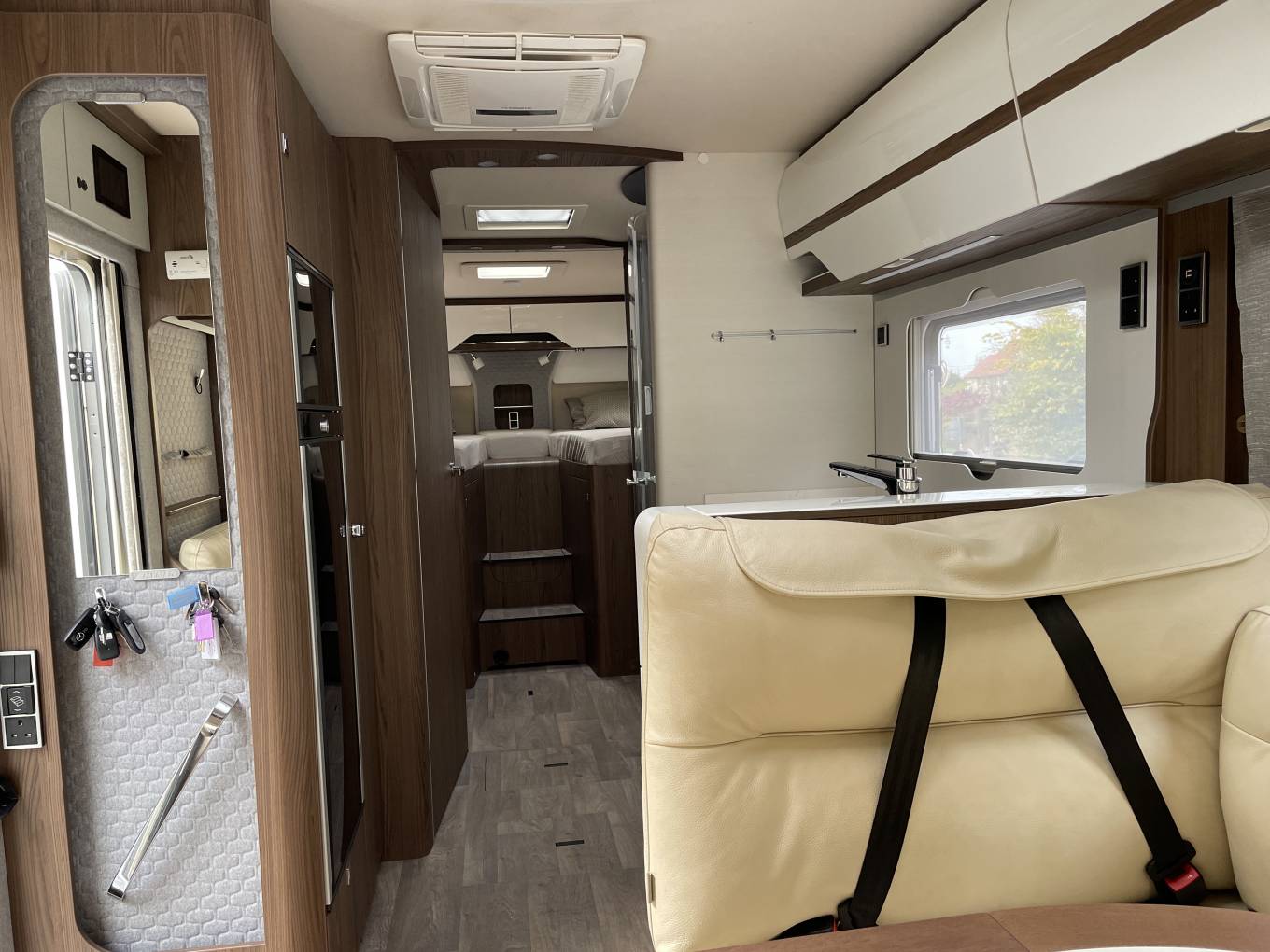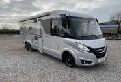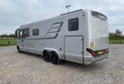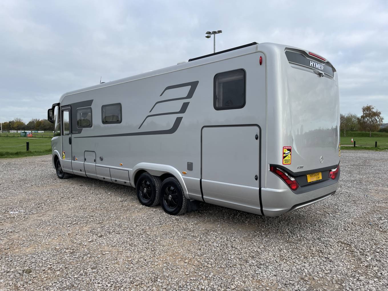 Motorhome Depot are delighted to present this superb 2022 Hymer B-Class Masterline I 880, a top of the range premium tag axle motorhome with a superb specification and benefitting from Hymers legendary build quality married to the supremely smooth Mercedes Benz engine and automatic gearbox. The Hymer has a great layout and plenty of space, starting at the rear you have a bedroom area with twin single beds that easily convert into a full width king size. This stylish area has a range of overhead lockers and storage cupboards under both beds and a Smart TV. The bedroom has a sliding door which leads to the shower cubicle, washroom and dressing area. This area has privacy doors from both the main living area and the bedroom and plenty of storage space. The living area is stylish great for relaxing or entertaining. The kitchen is fully equipped with a Thetford oven, grill and hob, a large fridge freezer, sink and drainer and plenty of storage space. The lounge/dining area is luxurious with, twin swivelling Captain’s seats, an L shaped sofa and a separate side sofa around a round extending pedestal table. The seating is finished in high quality cream leather, a concealed 32inch Smart TV is raised by an electric motor. There is a large comfortable drop down double bed above the cab. The stylish cab area makes travelling a pleasure, with the quality of Mercedes Benz evident, the auto box and cruise control ensure effortless cruising. The cab also benefits from a reversing camera, electric roller windscreen blind and android/CarPlay. The rear garage has large doors on both sides. The specification & extras are very impressive including, hab air con, an electric 6m Thule awning , 3 x lithium batteries with management system, solar panel, 5G Wi-Fi, Scorpion tracker, Cat 1 alarm system, Gas-It refillable LPG system with 2 x 11kg bottles, 1800w Puresine inverter an external BBQ point and much more! The Hymer is 8.99m long, 2.35m wide and has a max weight of 5,500 kg. Whether you are travelling in the UK or exploring Europe it is an unbeatable package.