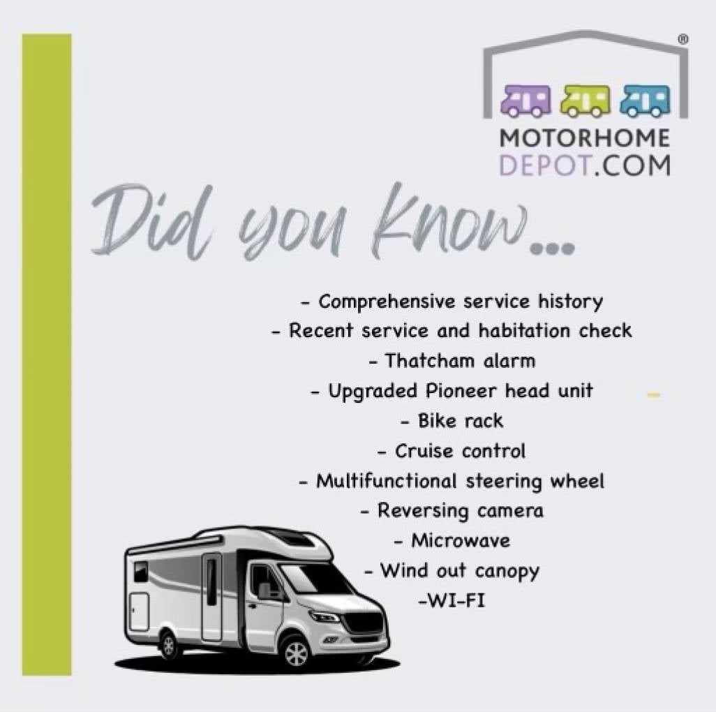 Additional features: Thatcham alarm, upgraded Pioneer head unit, multifunction steering wheel, cruise control, cab air con, wind out canopy, reversing camera, bike rack, Wi-Fi system, comprehensive service history, microwave, cab blinds.