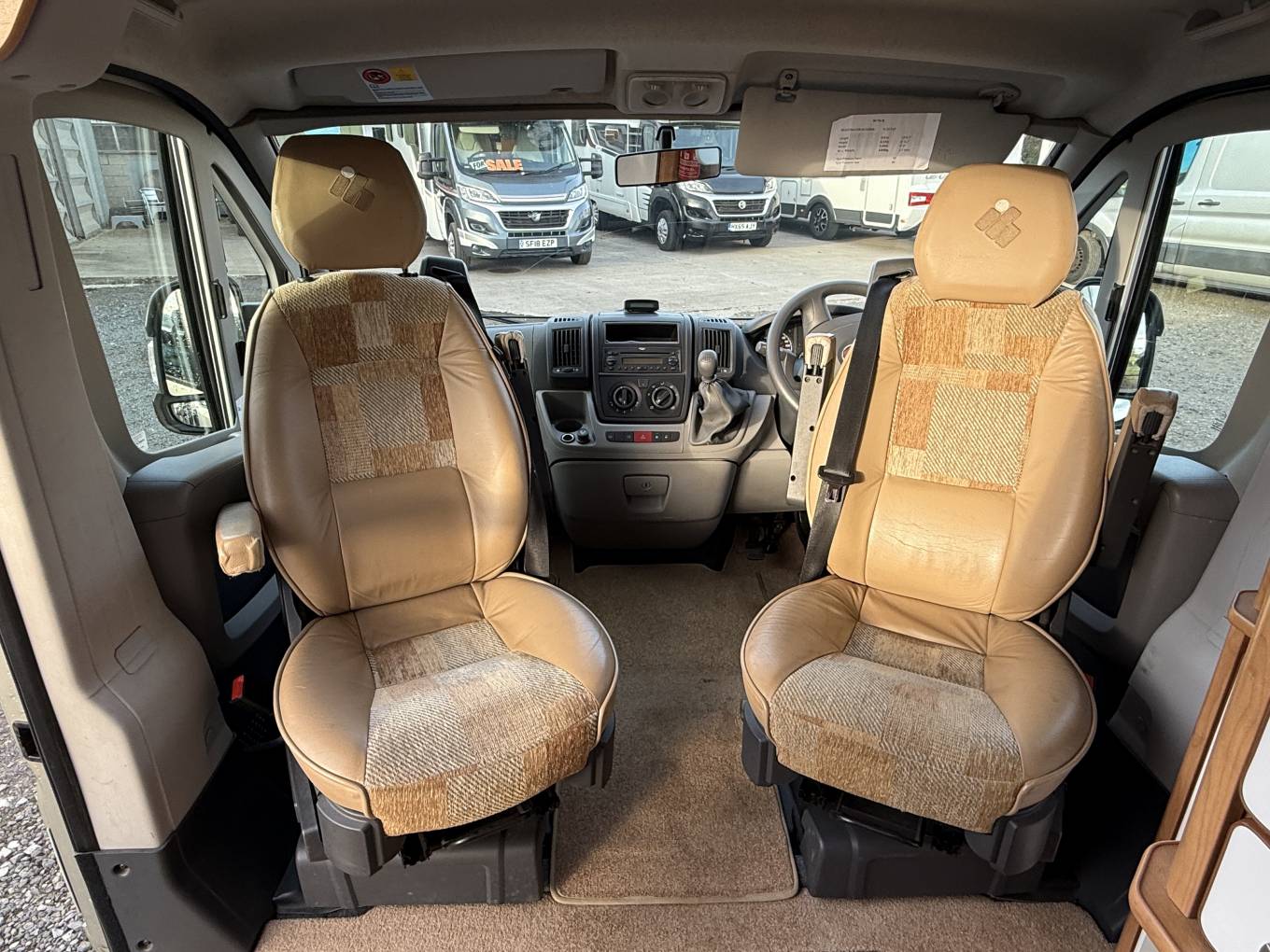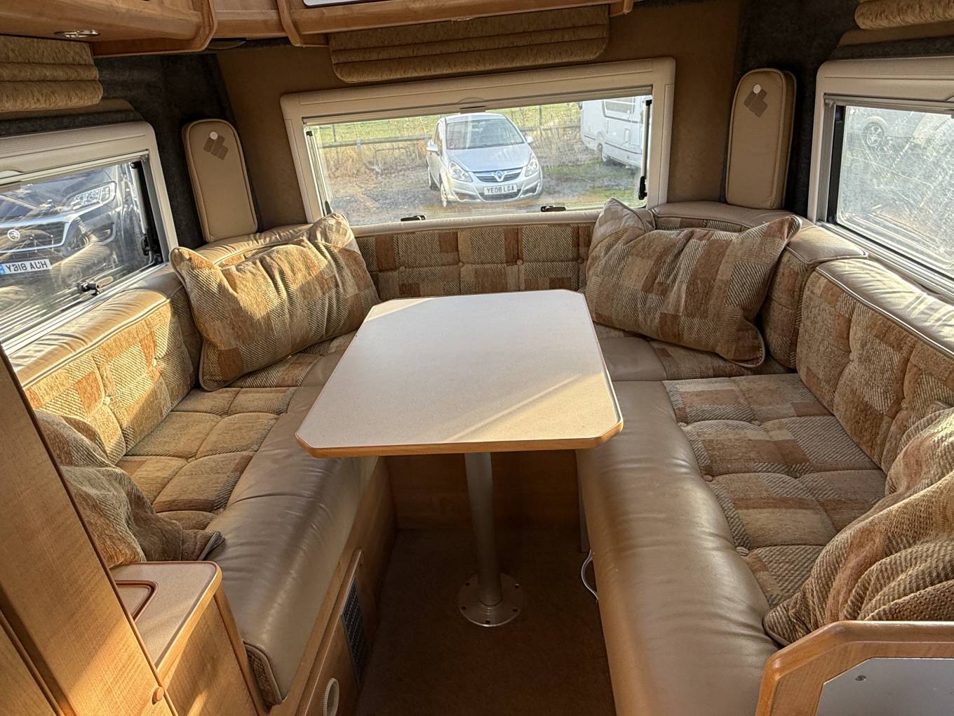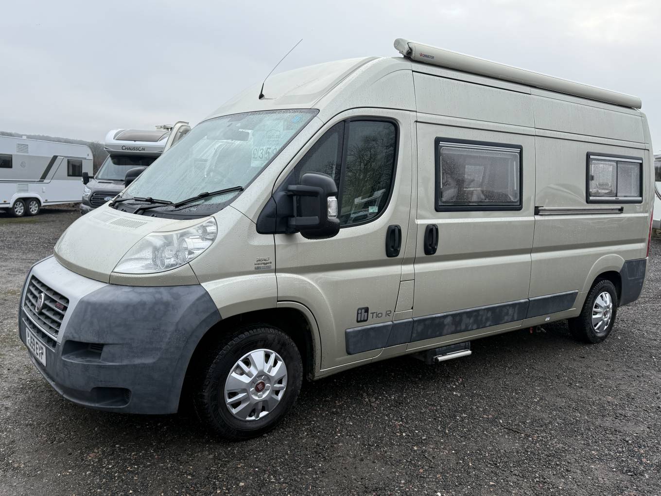 IH Motorhomes TIO R . 2009 (59 plate) 3lt engine, twin swivel half leather captains seats, cab air con, SOLAR PANel Omnistor awning, internal screens in cab plus external silver screen for windscreen, 6 speed gearbox, 5.99m long, Towbar and electrics, Fully serviced and well maintained, Two belted seats, Alarm system, Central locking, U-shaped rear lounge with attractive half leather and cloth upholstery, Electric flush Cassette Toilet, Shower, Large Fresh and waste water tanks, Oven, 4 ring hob, 3-way fridge (gas, 12V, mains) with freezer compartment, plenty of storage, wardrobe, food cupboard, under oven drawer etc, drinks cupboard, picnic table, two foldout tables, secret secure safe/security compartment, large rear garage - accessible from outside or inside, LPG gas tank, Truma heating and hot water unit, rear lounge converts to large double bed or can be two short singles these very well desiged I H Camper conversions are ever popular so an early viewing is advised