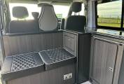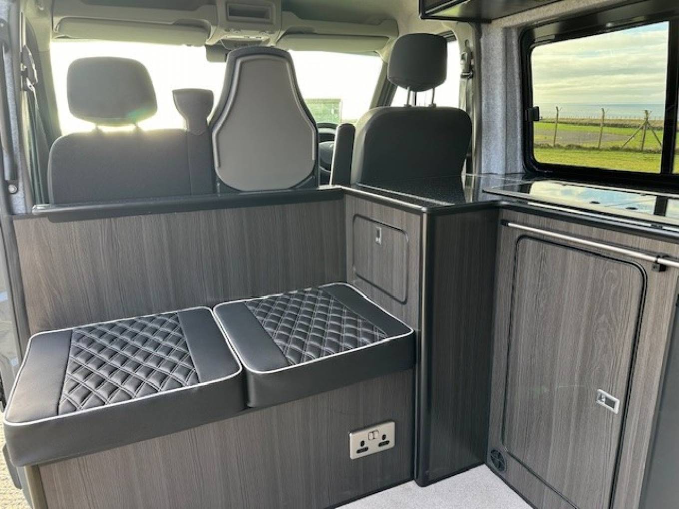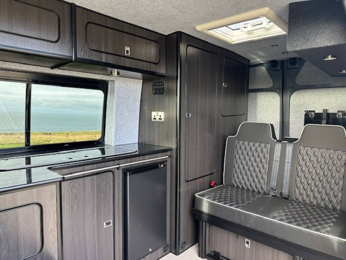 This Camper has been converted to a good standard, the conversion is brand new never used, The specification includes a Rock and roll rear Seat/Bed with seat belts, 3 seats up front so Five in total. Awning, LED Lighting, Roof Light, A Gas Hob, Sink, Fridge, Solar panel with duel charge, additional seating with storage bellow, A large rear wardrobe ,lots of storage lockers and ample Power Sockets all round.