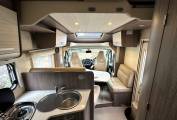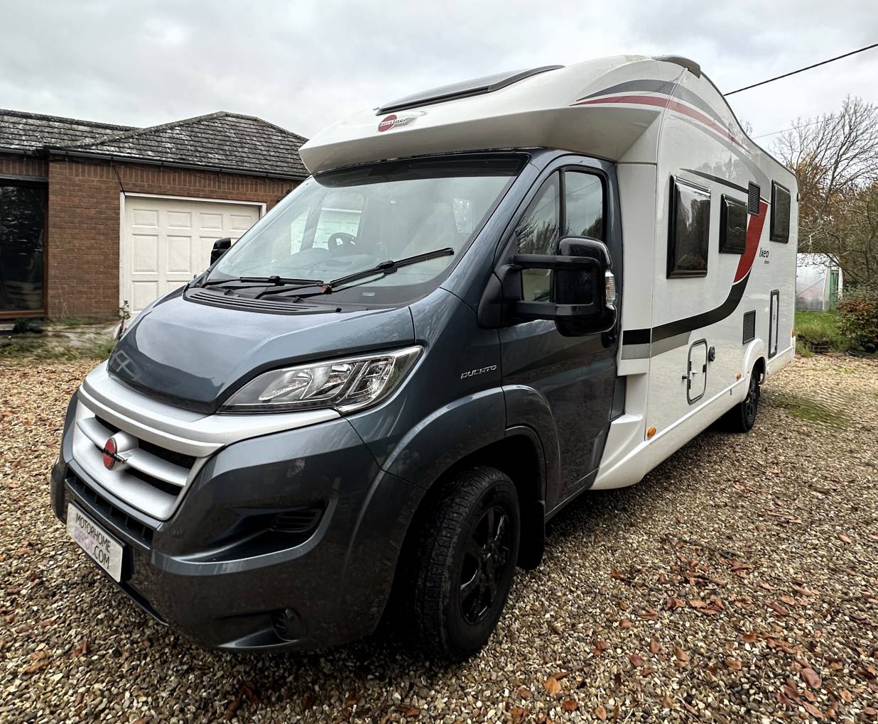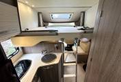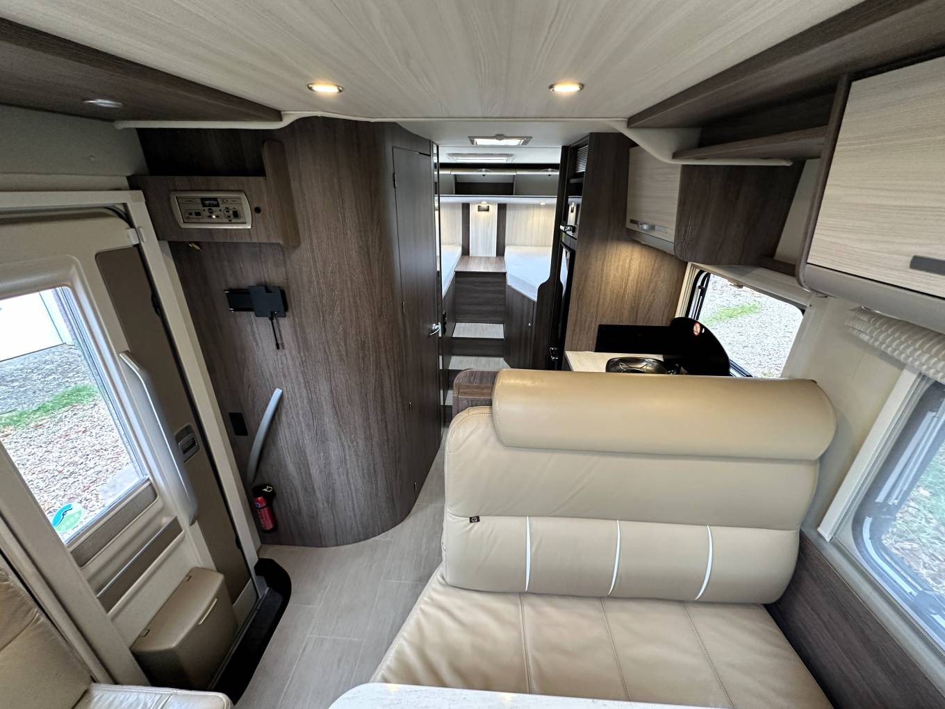 profile motorhome with electric drop-down front bed and rear fixed single beds over