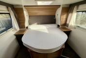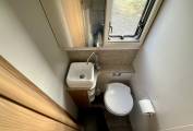 A separate spacious shower cubicle sits in front of the bedroom, and opposite the compartment for the Thetford toilet, washbasin and vanity unit.