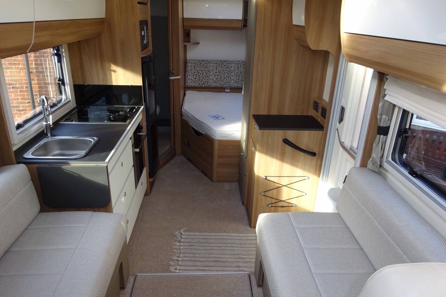 As you step inside you get a real feel for the spaciousness and luxuriousness of this motorhome. You immediately notice that the inside is as well presented as the exterior of this motorhome. At the front of the motorhome there is a seating area for 6 including 2 captains chairs. The seating area easily makes up in to a good size double bed. You then come to a very nice, well equipped kitchen, fitted out with an oven, grill, 3 burner gas hob complimented with a fourth electric ring, microwave, sink and a large fridge with ice box. There are plenty of storage cupboards and compartments throughout the living and kitchen areas, including a large wardrobe and garage, allowing you to bring everything you might need. Towards the back of the motorhome there is a French bed. On the opposite side is a good sized bathroom fitted with a toilet sink and separate shower, all in immaculate condition. The Bailey is also fitted out with the alde wet heating system.