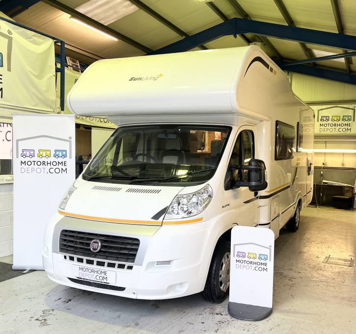 Introducing this Automatic 2014 Sun living A49DP 6 berth, Coach built family motorhome. Ideal for a family holiday as it has 6 seatbelts and large garage. Built of the popular FIAT chassis with a 2.3 litre diesel engine.