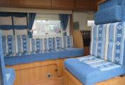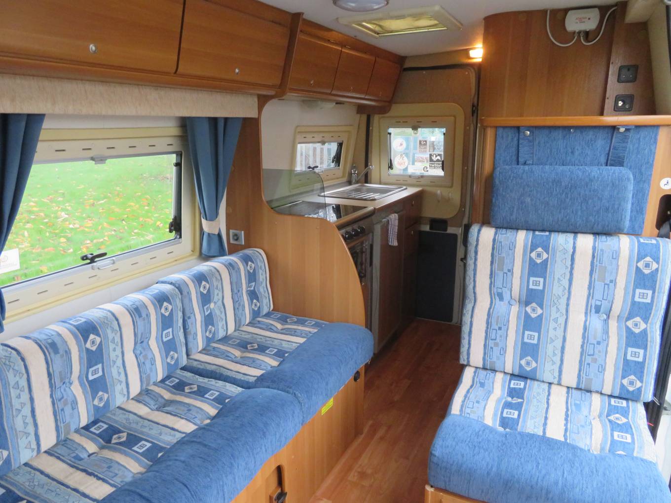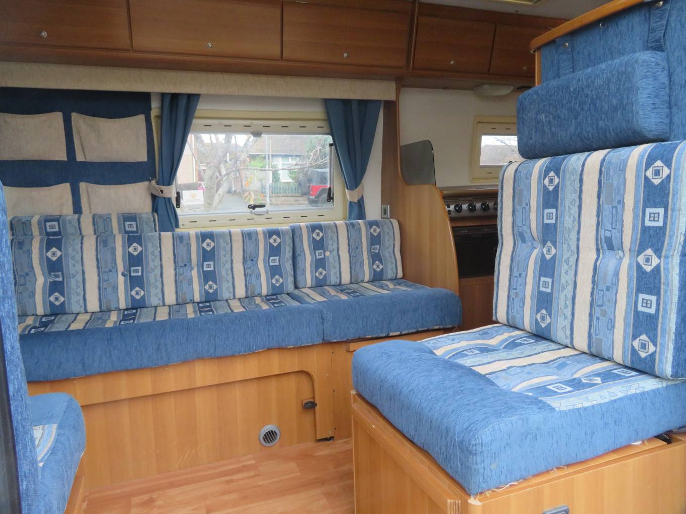 The layout of this motorhome is rear kitchen/washroom. The kitchen has plenty of work surface, a 4 burner gas hob and grill, 3 way fridge, sink with built in drainer and plenty of storage all round. The washroom has a shower, electric flushing toilet, hand basin, vanity mirror, storage for toiletries. Centrally in the van is the lounge this makes into 2 long single beds or one super large double there is a 3rd 3 point belt here so great for day trips out. There is also a drop down unit for putting your TV on as well storage over head. The extras ready fitted are awning, electric step, towbar.