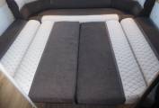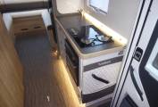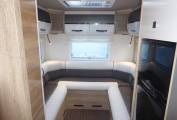 The rear of the vehicle is home to a comfortable U-shaped lounge, located above an externally accessed storage area. This seating can be converted into a transverse double berth. There is also a pull down double berth above the cab.