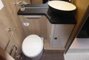 Opposite is the offside bathroom with a toilet, a hand basin, and a separately screened shower cubicle.