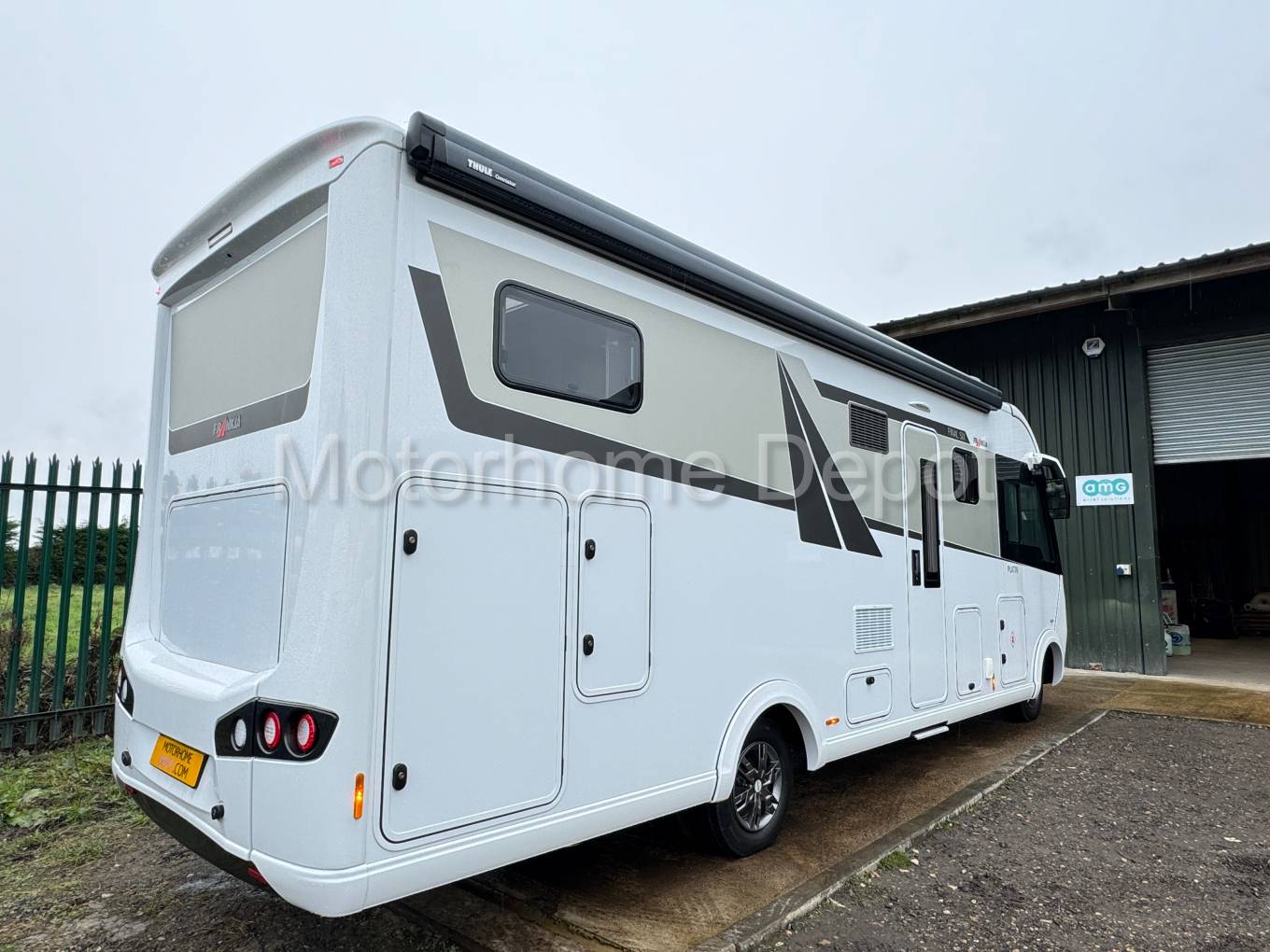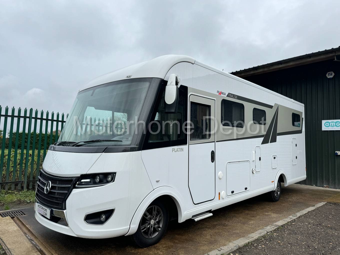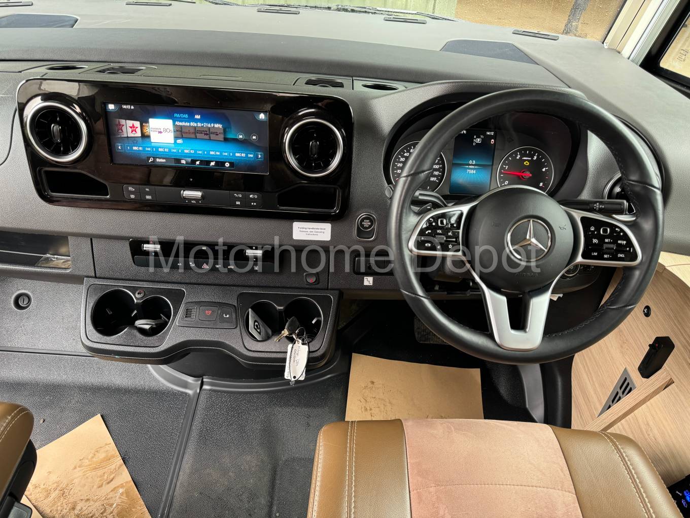A stunning limited Final Six Edition from one of Germanies finest A class manufacturers Frankia. This I7900 GD Platin model is packed with goodies for off grid camping in style. Based on the class leading Mercedes Benz Sprinter chassis with 3.0d 6 cylinder 190bhp AdBlue engine & the 7 G-Tronic automatic gearbox rated as Euro 6D. This is a 1 owner from new vehicle & will come with a new Habitation check & a 3 year MB&G Platinum Warranty. The cab benefits from: climate control air conditioning; cruise control; central locking; electric adjustable & heated mirrors; Factory fitted 10.25” LED screen multimedia system with steering wheel multifunction keys, Navigation; DAB & touchscreen, Bluetooth phone & streaming, reverse camera screen; electric privacy blind to front screen; blinds to side windows.