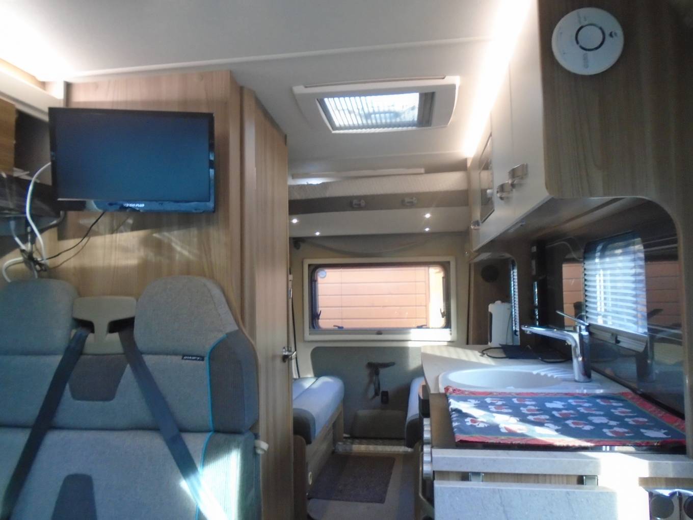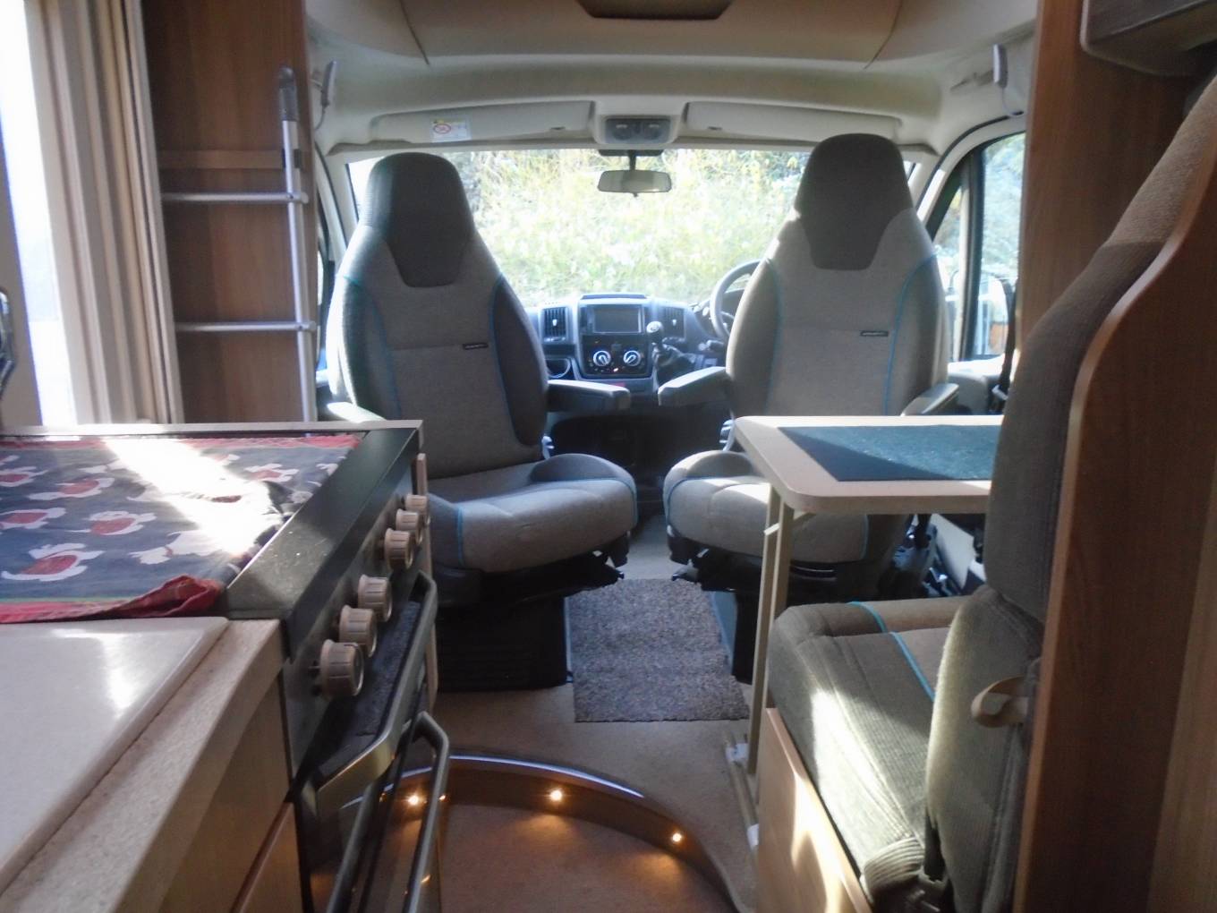 Specification on this model is high with gas & electric heating and hot water, solar panel, blinds & fly screens, etc. Whilst in the cab you will find air conditioning, cruise control, integrated cab blinds to windscreen and side windows, pull up tablet/phone holder, driver and passenger airbags, blue tooth phone, panoramic rooflight.