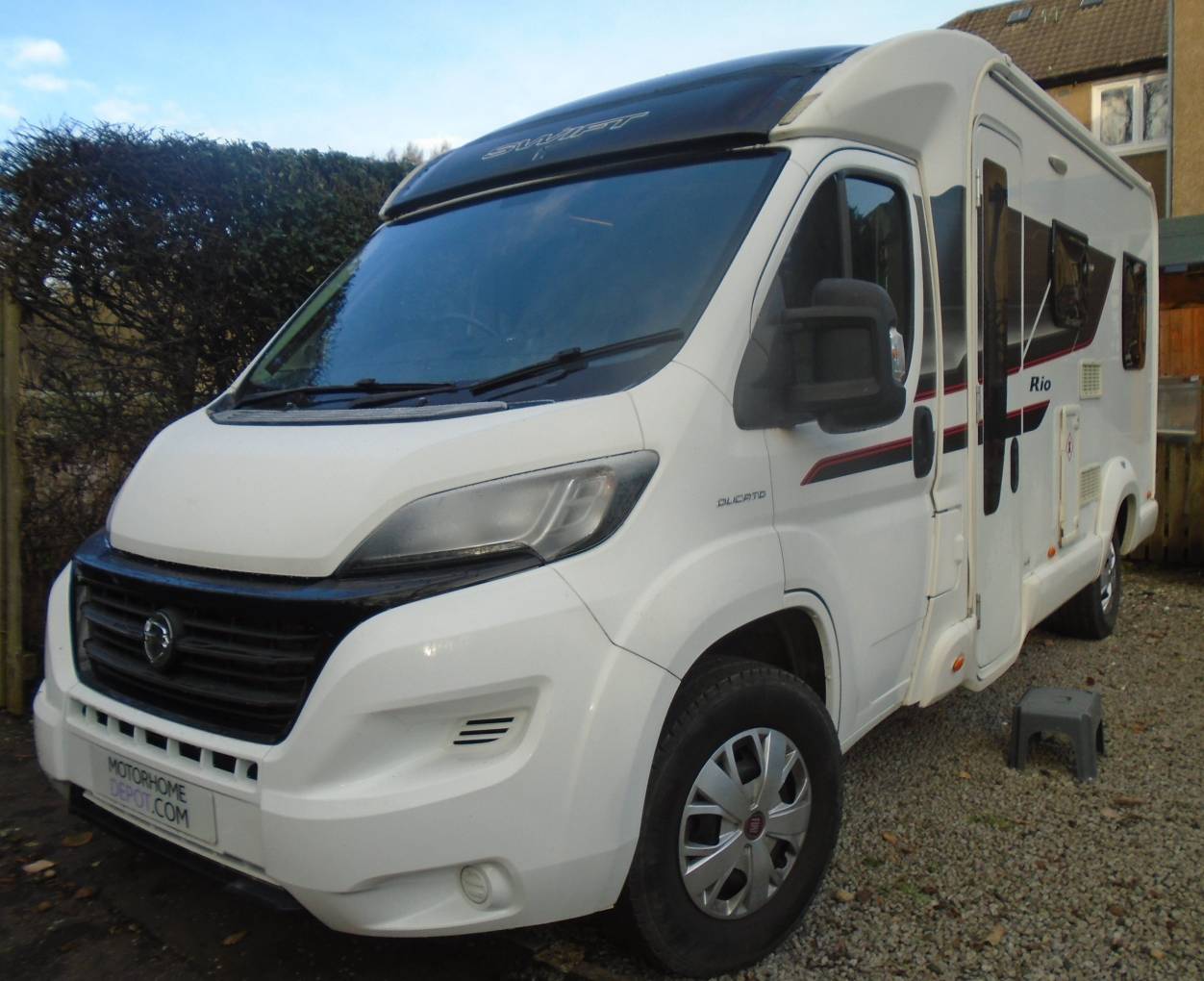 Motorhome Depot are pleased to have on board a lovely, well presented, 2016 Swift Rio 340 and is in great condition both inside and out and is ideal if your looking for a compact family motorhome coming in at just 6.4metres in length.