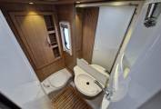Profile Hymer T554CL features fixed French bed and a makeup large singe/small