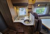 Across the centre of the motorhome is the kitchen consisting of a three burner
