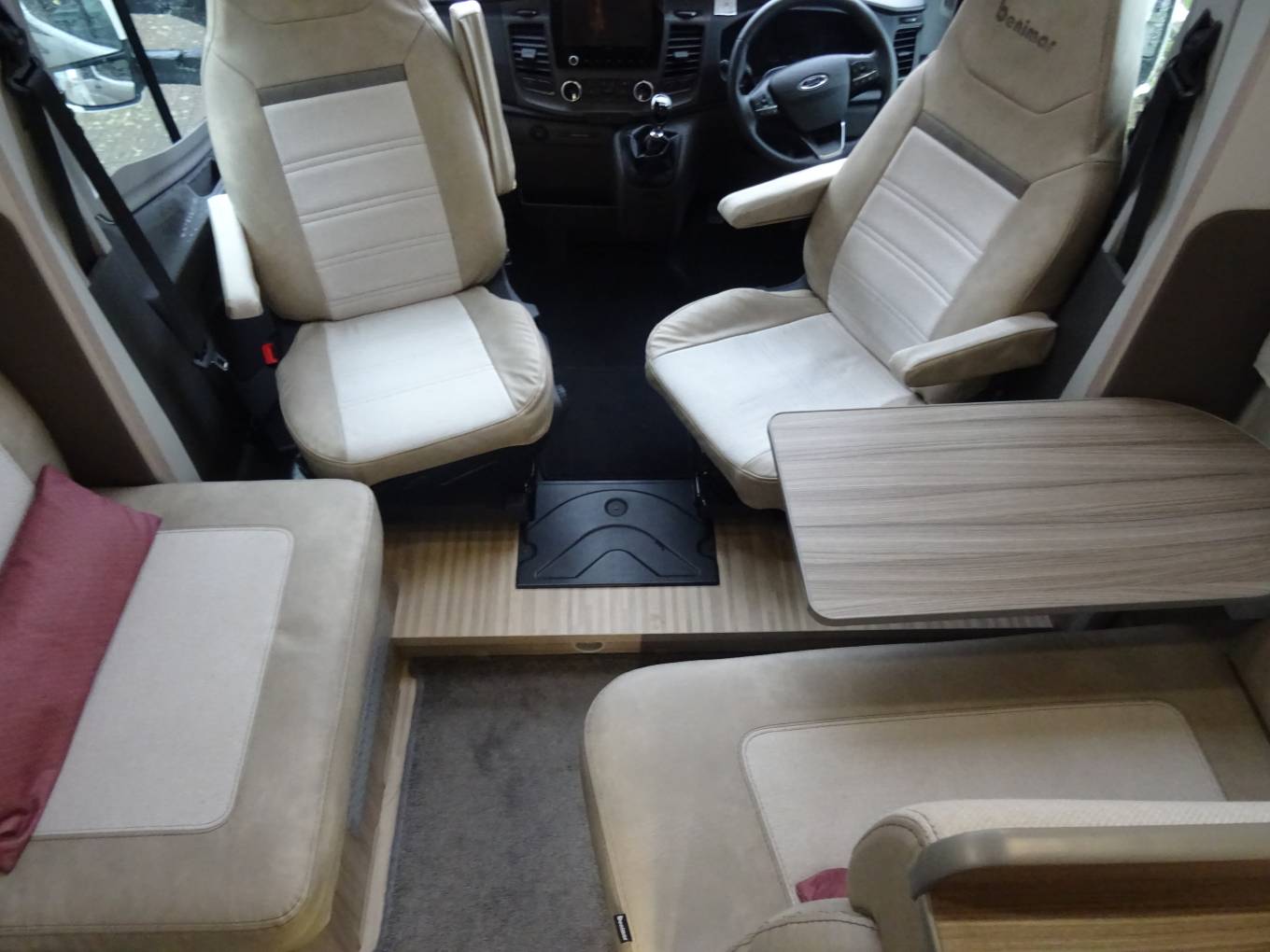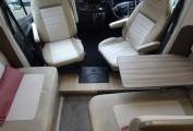 Both cab seats swivel to make a nice lounge/dining area. There are 2 forward facing belted seats and an offside sofa that faces in. The table arrangement has been altered to suit the current owners preference (this works well). The original table will be included in the sale giving any buyer the choice to revert back.