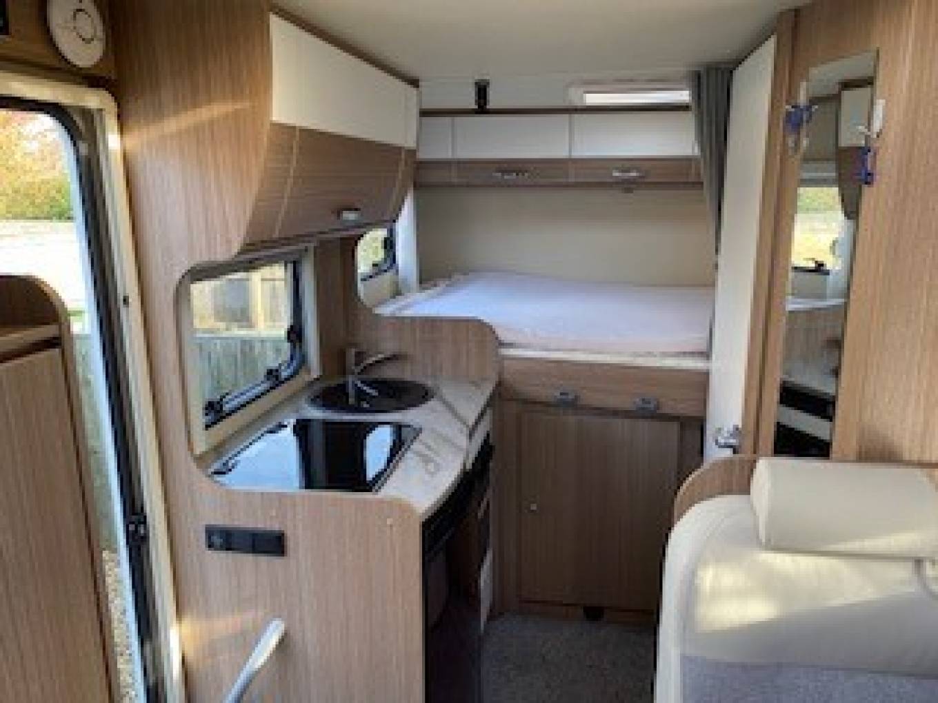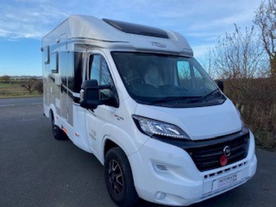 Please call Peter Fletcher on 07375 391623 for more information. This is an extremely well maintained compact motorhome at only 5.98m in length, with auto gearbox, built by Carado (part of the Hymer Group) and with a 2.3 litre engine and a rear transverse fixed double bed above a large garage.