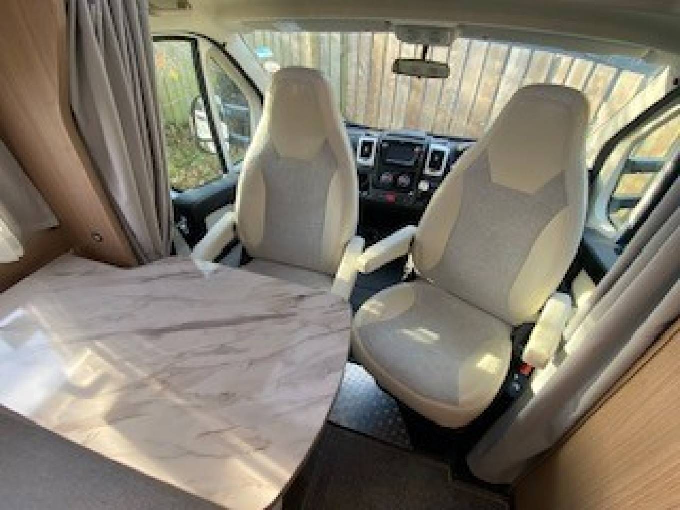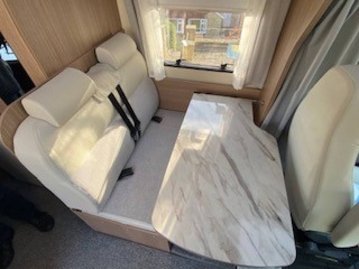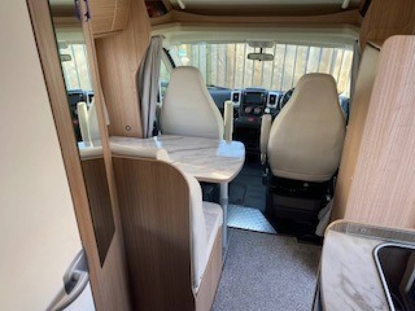 The garage is large enought to take 2 bikes and has a large door on the offside and a smaller one on the nearside. 2 gas bottles are included in the sale along with a motorhome waterproof cover, alloy wheel covers, a Gemini alarm and a Lockdown tracker with 12 months subscription paid for. Internal and external screens are also included. The vehicle has a reversing camera and motorhome specific media unit including satellite navigation along with cruise control and cab aircon.