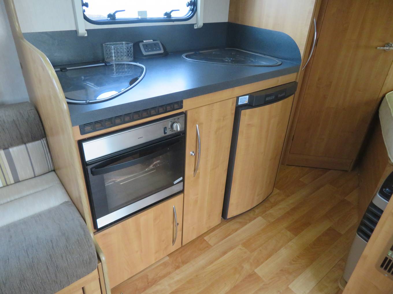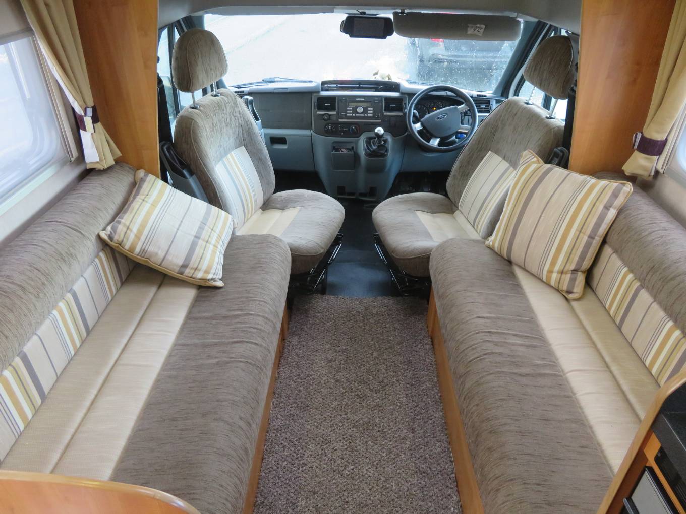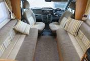 With a light airy interior this model incorporates the 2 swivelling cab seats to form a spacious and comfortable front lounge. The 2 settees can be easily pulled together to create a front large double bed.