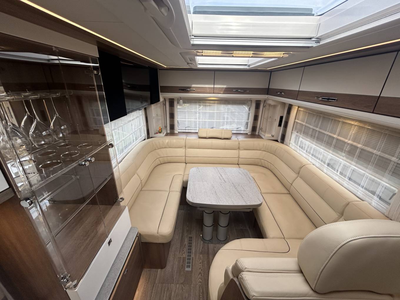 Externally, this motorhome is equally impressive with a large garage accessible from both sides, tow bar, large electric awning, reverse camera, and twin alloy wheels. Two gas bottles and the efficient Alde heating system ensure comfort in all seasons.