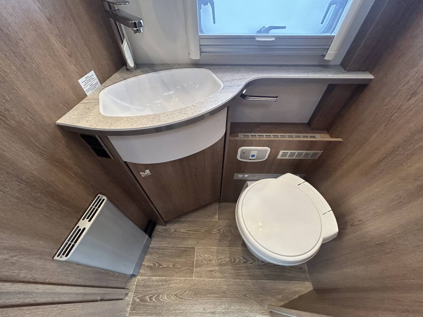 Cooking on the road has never been easier! The kitchen boasts a 3-gas hob, sink with mixer tap, a 3-way fridge freezer, and a grill. With electric door and drawer locks with generous storage, it’s perfect for creating culinary masterpieces wherever you go.
