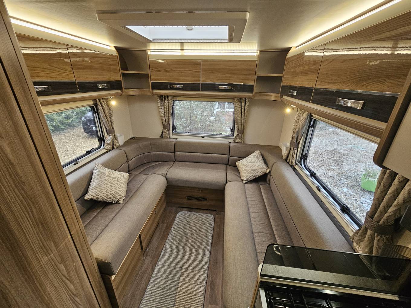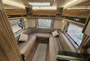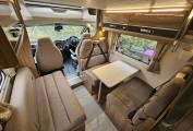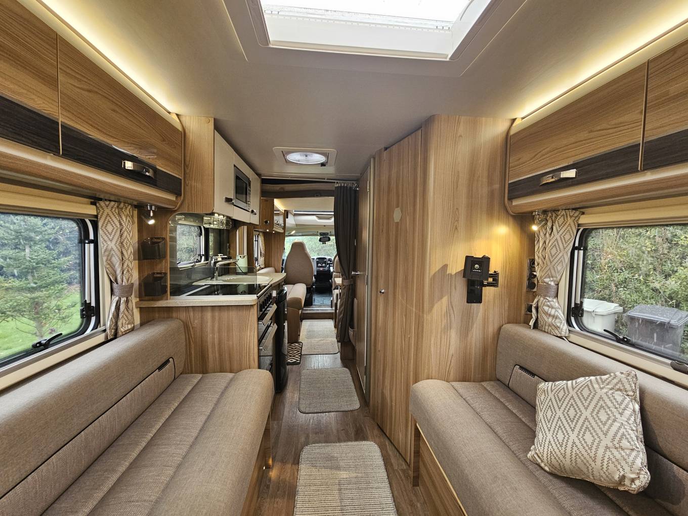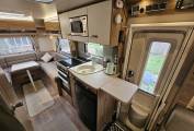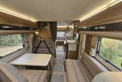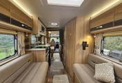 The layout is ideal for families or groups, with a rear lounge that converts into a large double bed, a central dinette that offers another double, and a manual drop down double bed above the lounge area. The generous layout offers a spacious, light and comfortable living environment whether travelling or parked up.