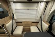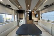 This 4 berth is perfect for a family of 4 to have a trip of a life time, or simply for two and enjoy the space and convenience of the layout. The cab offers Automatic 9 speed, Cruise control, air conditioning, built in blinds, sat nav, reverse camera, full steering wheel controls, the perfect combination for a drive to remember. Both seats turn to the centre to complete the central dining area where you have an adjustable table and side facing seats.