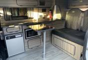 van mode has 2 seatbelts. The pop top above has a comfy mattress and keep warm