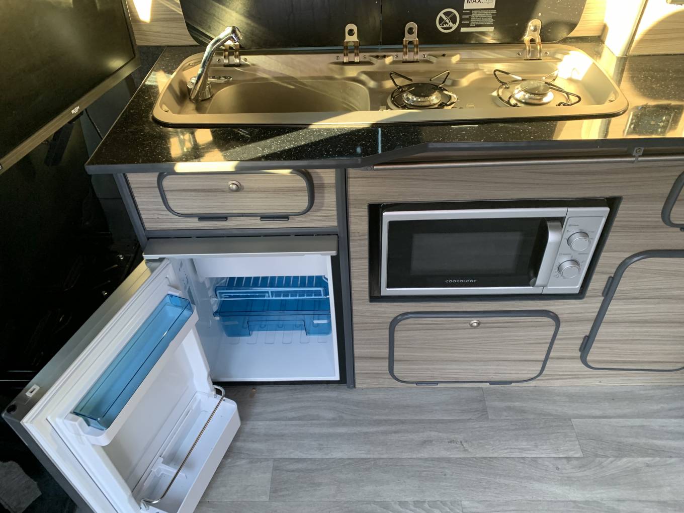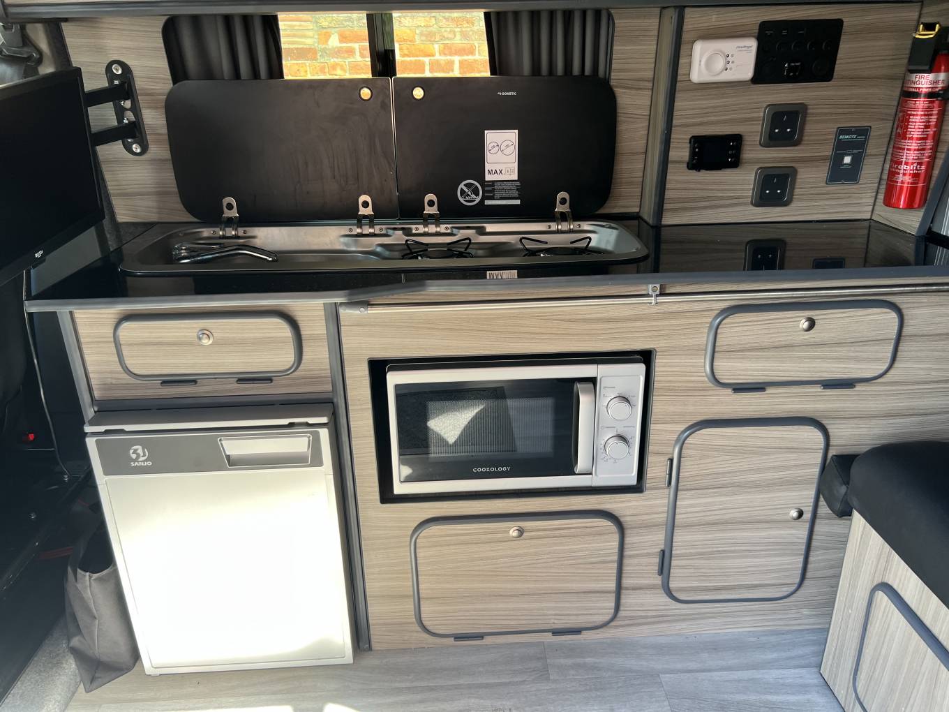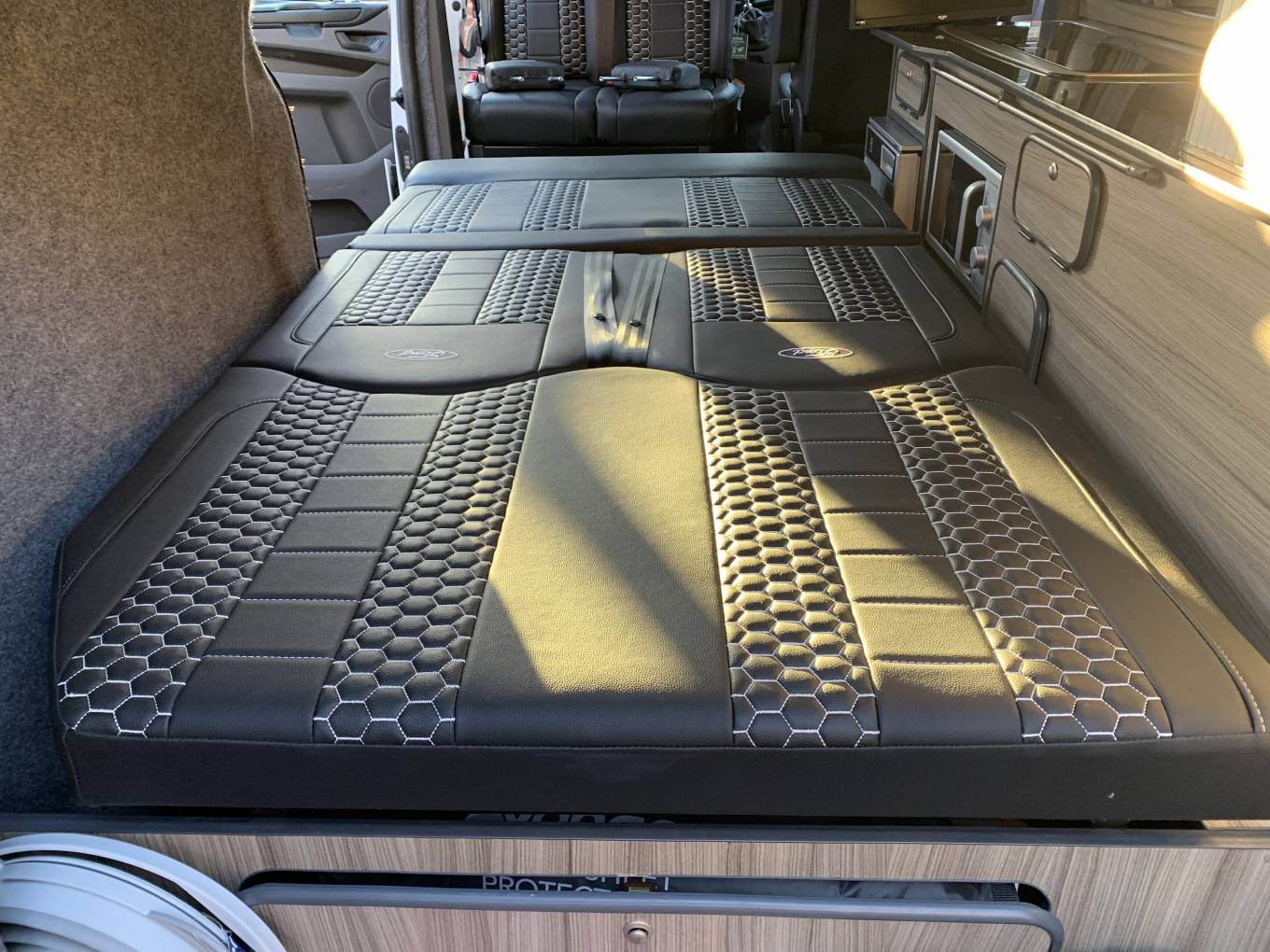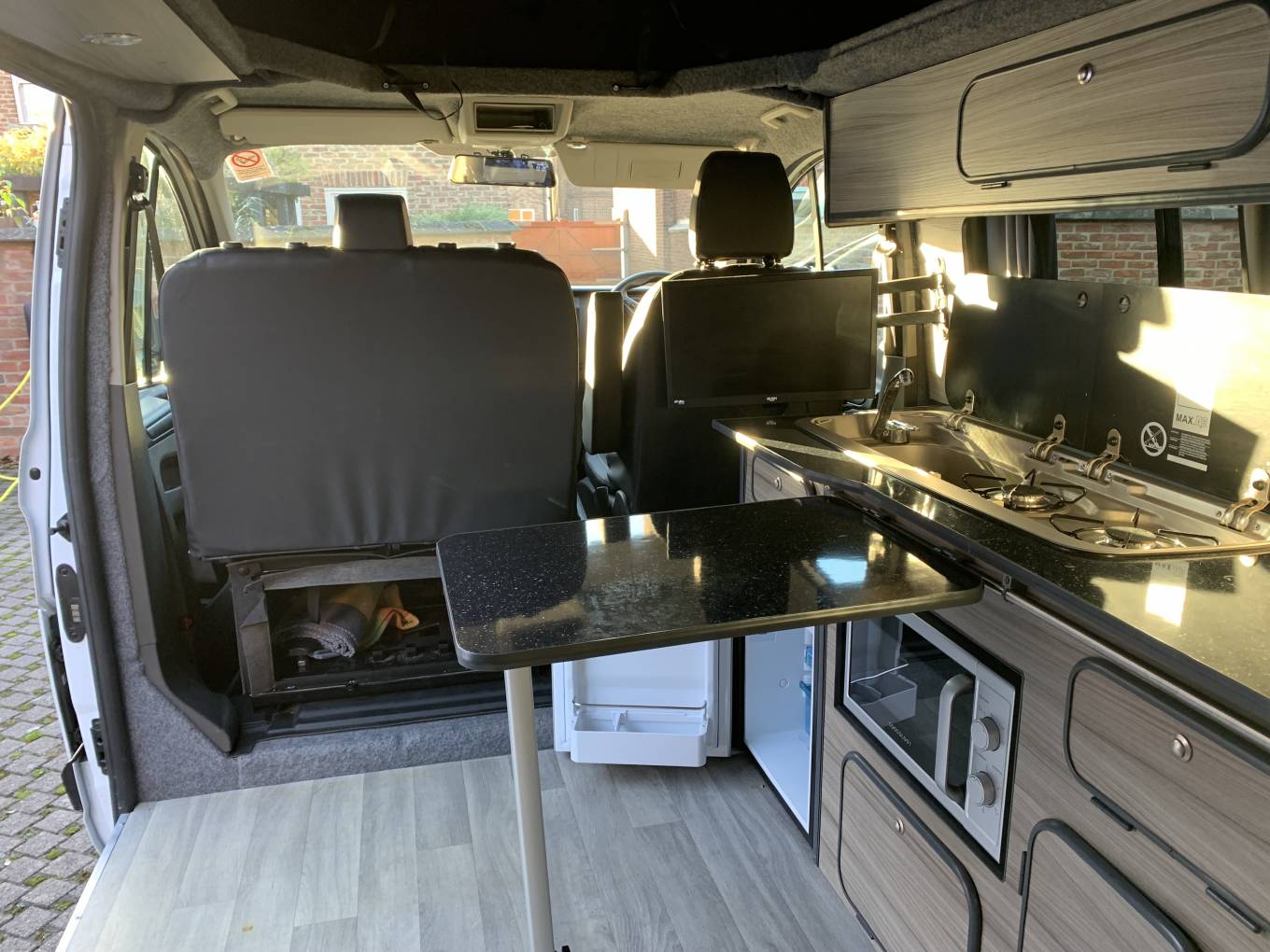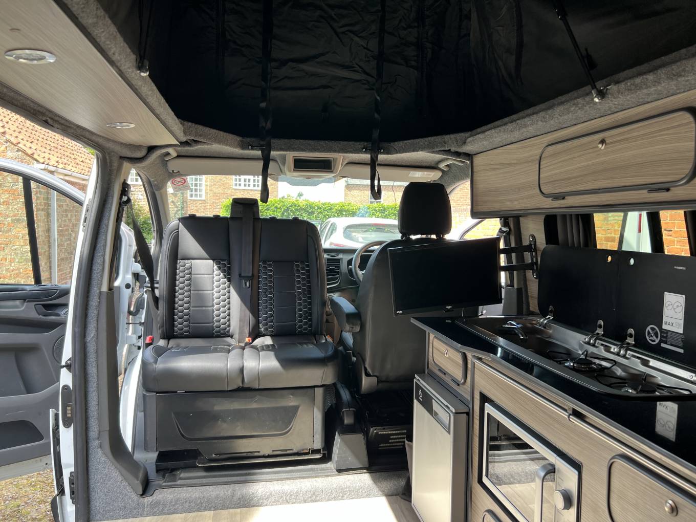 This is a great 4 berth, Ford Transit Custom pop top, professional, campervan conversion. The build quality is excellent, based on a Ford Transit Custom chassis and it’s an ideal campervan or day van, given the 5 seatbelts. Leather upholstery throughout and minimal use by the current owner.