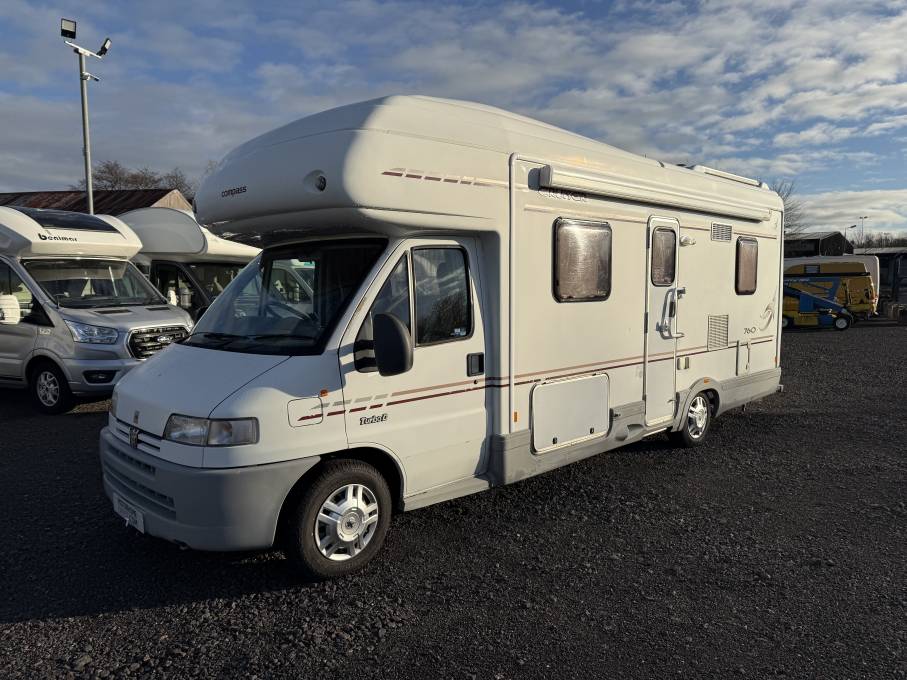 Motorhome Depot Glasgow is delighted to have for sale this rare to market 2002 Compass Cruiser 760 motorhome. The Cruiser 760 has one of the most spacious living and relaxation areas for a motorhome together with a full width rear ensuite dressing room/bathroom area.